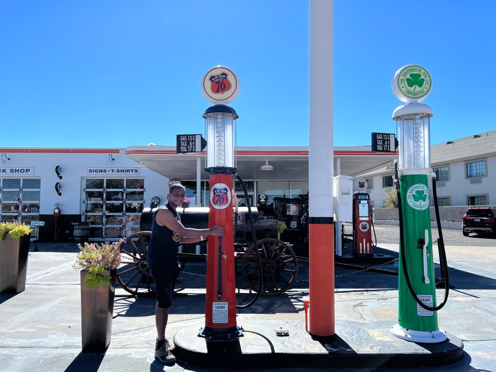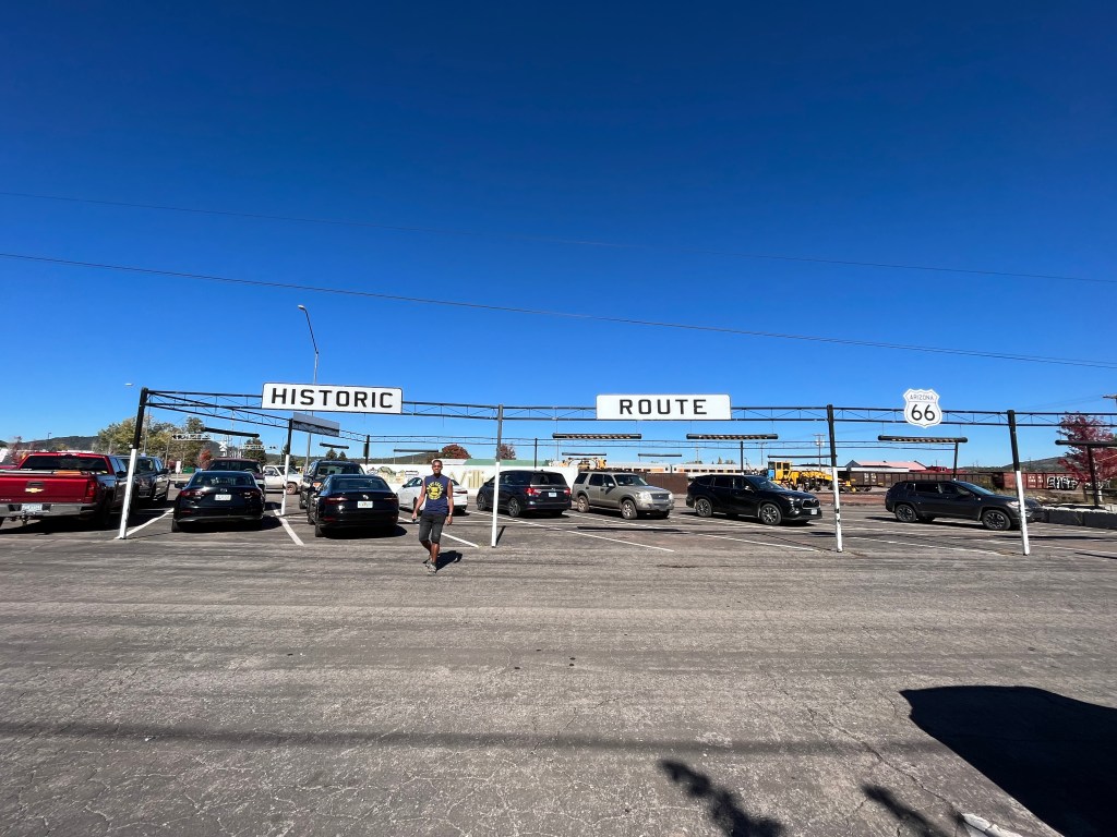 Le jour de notre départ du Grand Canyon, nous avons fait un stop à la ville de Williams (visite de la fameuse Route 66) avant de nous rendre à la ville Phoenix (dernière étape de notre road trip, à 350 km environ de Tusayan). La ville de Williams est l’une des plus dynamique et touristique, localité de l’histoire de la Route 66. De plus, c’est une porte d’entrée pour la visite du Grand Canyon (situé à 85 km), notamment avec le train « Gand canyon Railway ». La rue principale (la 66), classée « national Historic Distric aligne motels, restaurants, jolis magasins, panneaux vintage, vielles stations-service…
