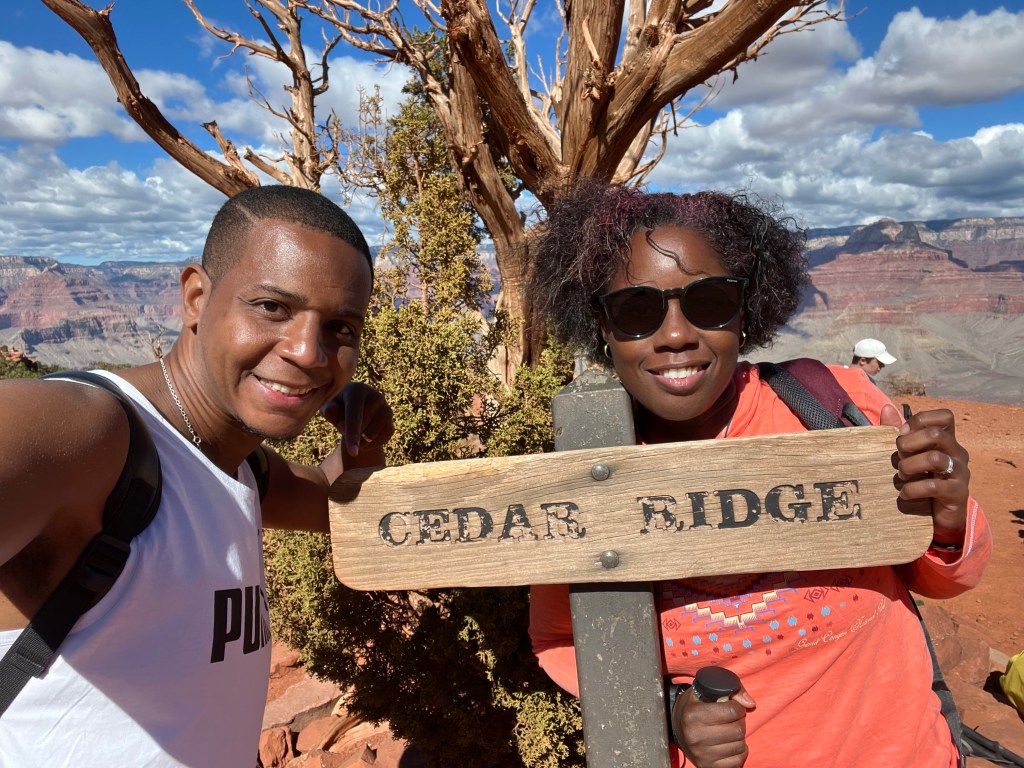 Le lendemain, journée très ensoleillée, 14 degrés, température idéale pour descendre dans le Canyon, par la randonnée de South Kaibab jusqu’au « Cedar Ridge » en passant par le « Ooh Aah Point » (environ 5km aller-retour pour un dénivelé + de 338 m).