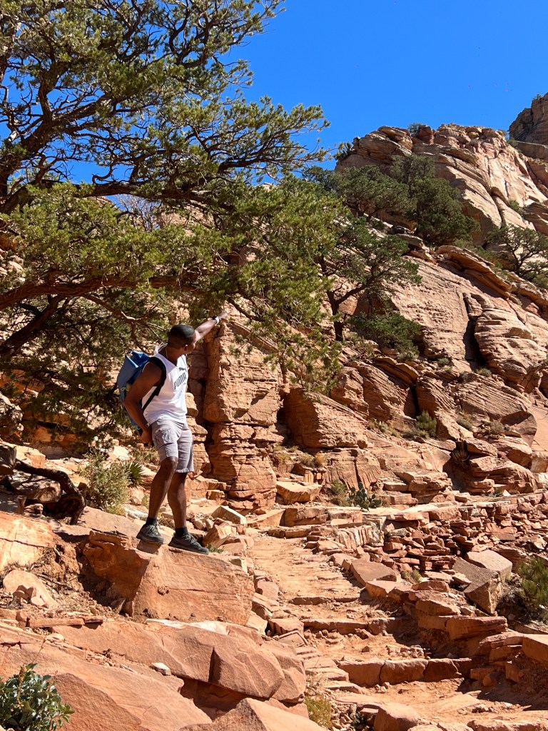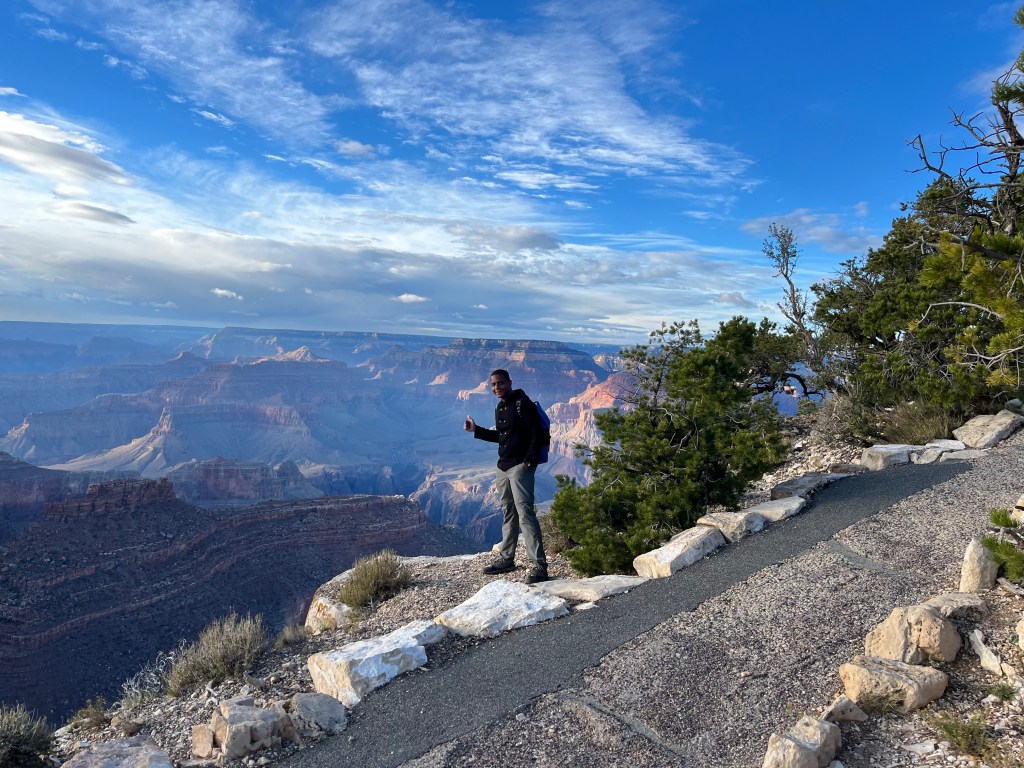 Après cette randonnée dans le Canyon, nous avons marché le long de la Rim trail jusqu’au Mather point où notre voiture était garée (soit 4 km environ).