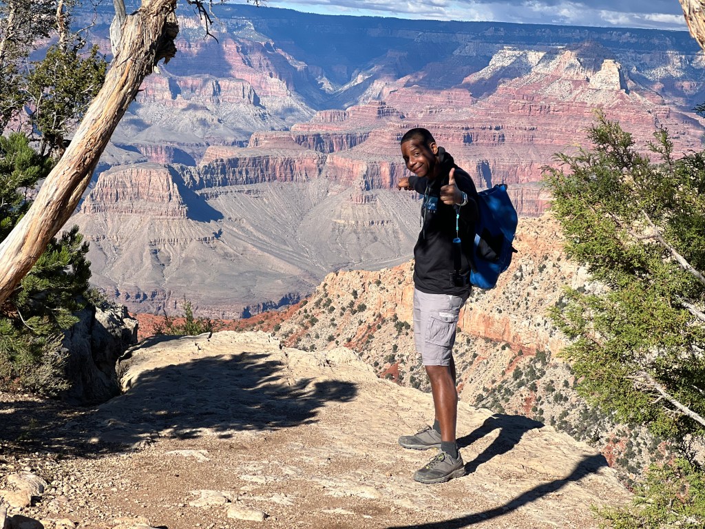 Le premier jour après avoir dormi à Tusayan, il pleuvait et faisait froid 8 degrés, nous avons donc fait la grasse matinée puis quelques courses, avant d’attaquer la visite du Gand Canyon South Rim, l’après-midi. Pour cette première journée de randonnée dans le Parc, nous avons choisi de marcher le long du Rim Trail du Mather Point au début du Bright Angel Trailhed (soit 5 km l’aller, Retour en navette gratuite du parc).