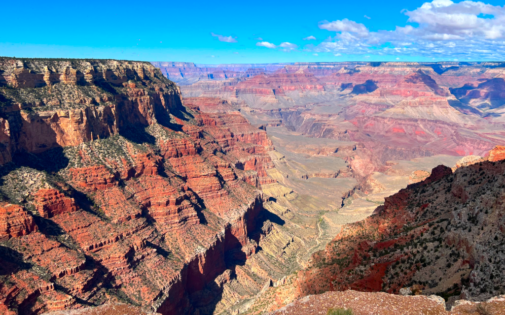 Le parc possède 2 rives (Nord et Sud), que l’on appelle North Rim et South Rim. L’entrée est payante 35 dollars par véhicules, valable 7 jours consécutifs. Heureusement, le Pass America the Beautiful que nous avons acheté depuis la Zion National Park est évidemment accepté ! Nous avons choisi de visiter la partie Sud du Grand Canyon (South Rim), la mieux aménagée et facile d’accès.