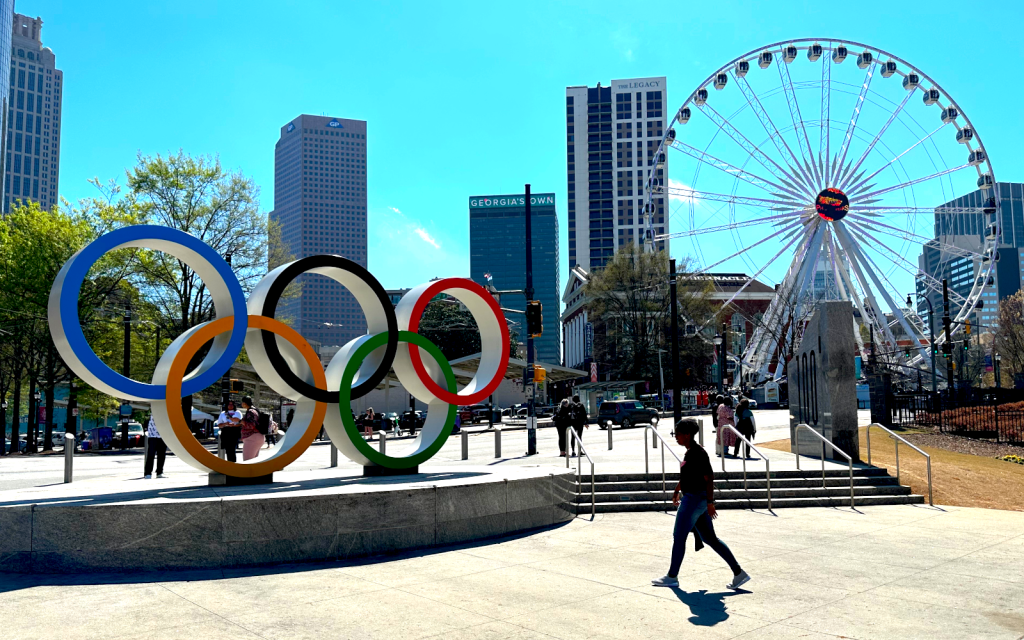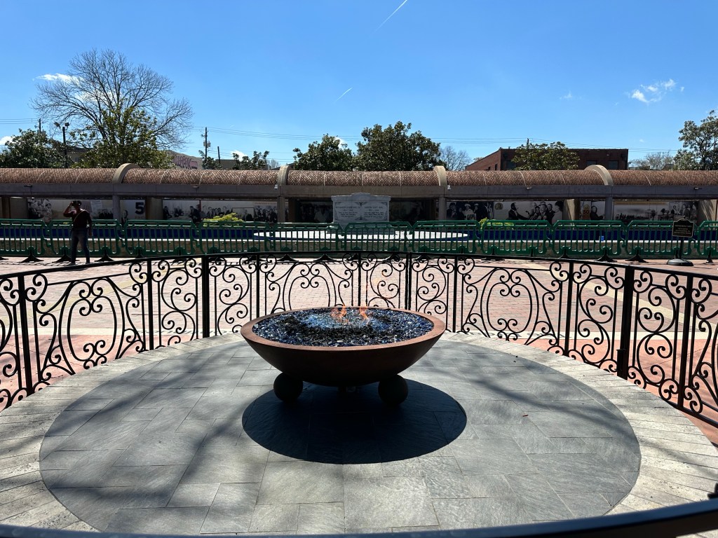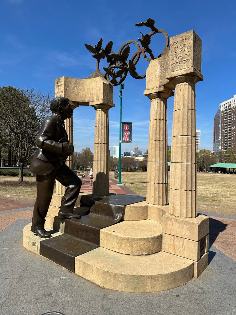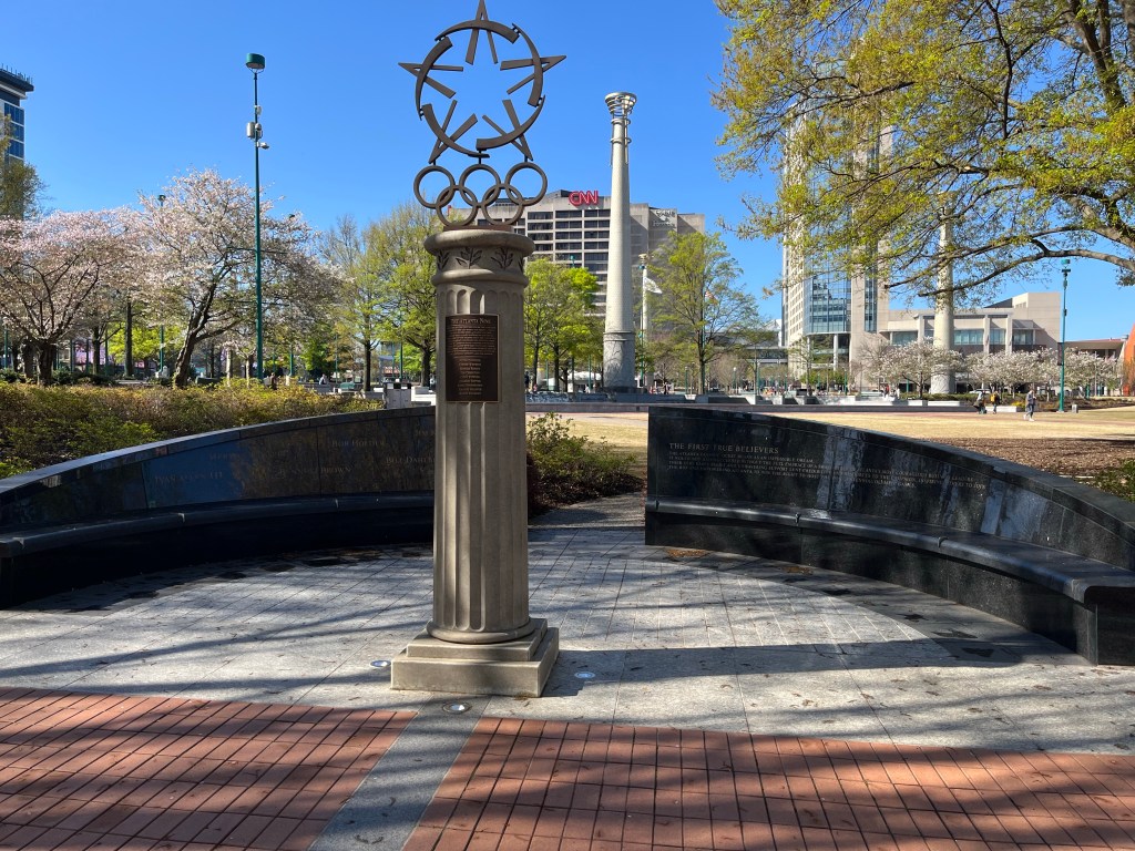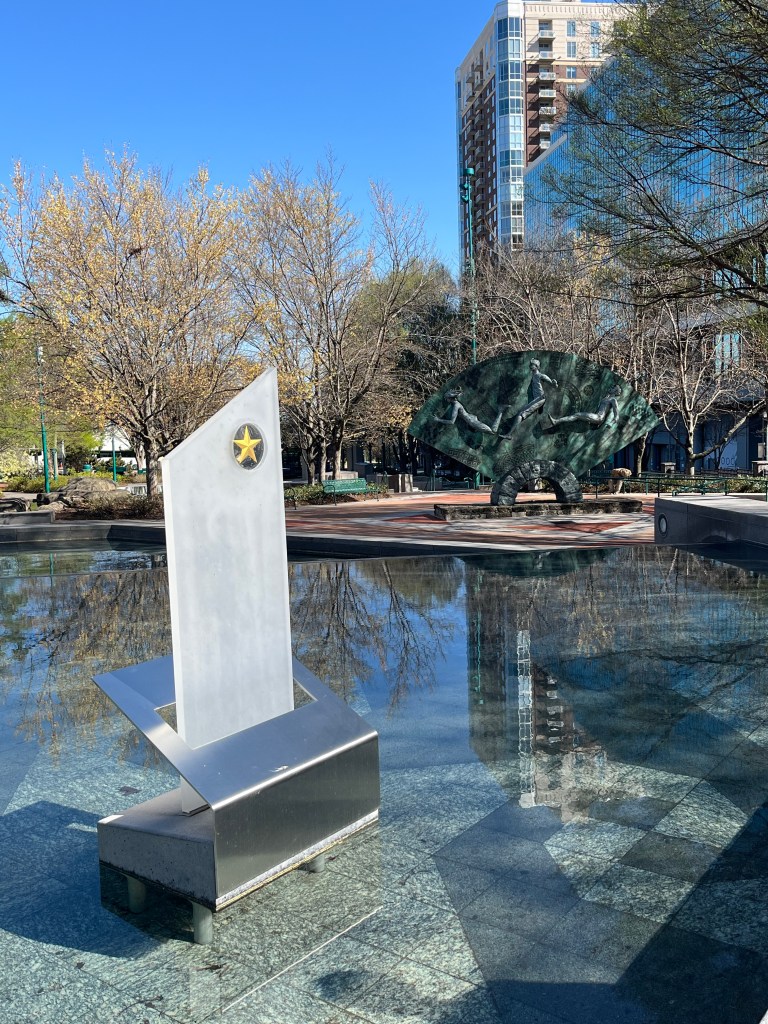 J’ai été agréablement surprise par la ville d’Atlanta, où l’on voit beaucoup d’afro-américains notamment à tous les postes de travail (même si parfois il y a aussi très nombreux SDF). Nous avons commencé notre visite par le parc centenaire ayant accueilli les jeux olympiques de 1996. Le parc est magnifique alliant jardins, fontaines, jets d’eau, sculptures, oeuvres d’art… De plus, le temps était magnifique !!!