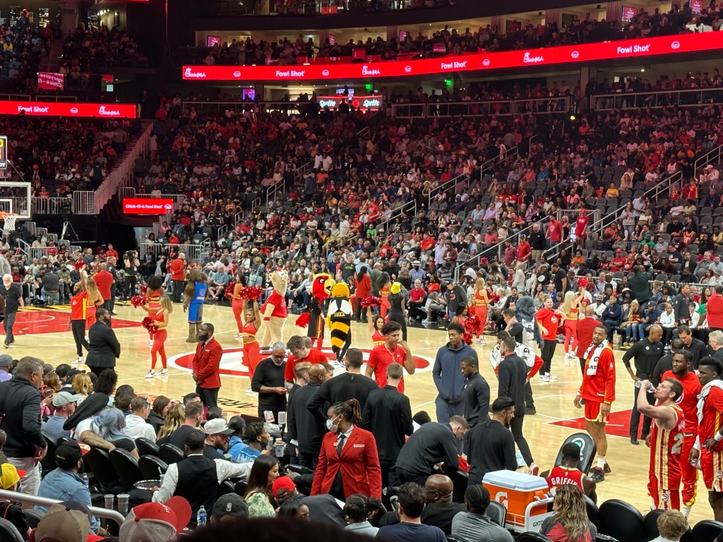 Étant à Atlanta, le jour d’un match de NBA, il nous a paru essentiel d’assister au match des HAWKS (l’équipe locale d’Atlanta) contre les PACERS, d’autant plus que l’aréna était à 4 minutes à pieds de notre hôtel. Et évidemment, grâce à notre soutien et nos encouragements, ils ont à gagné de plus de 10 points.