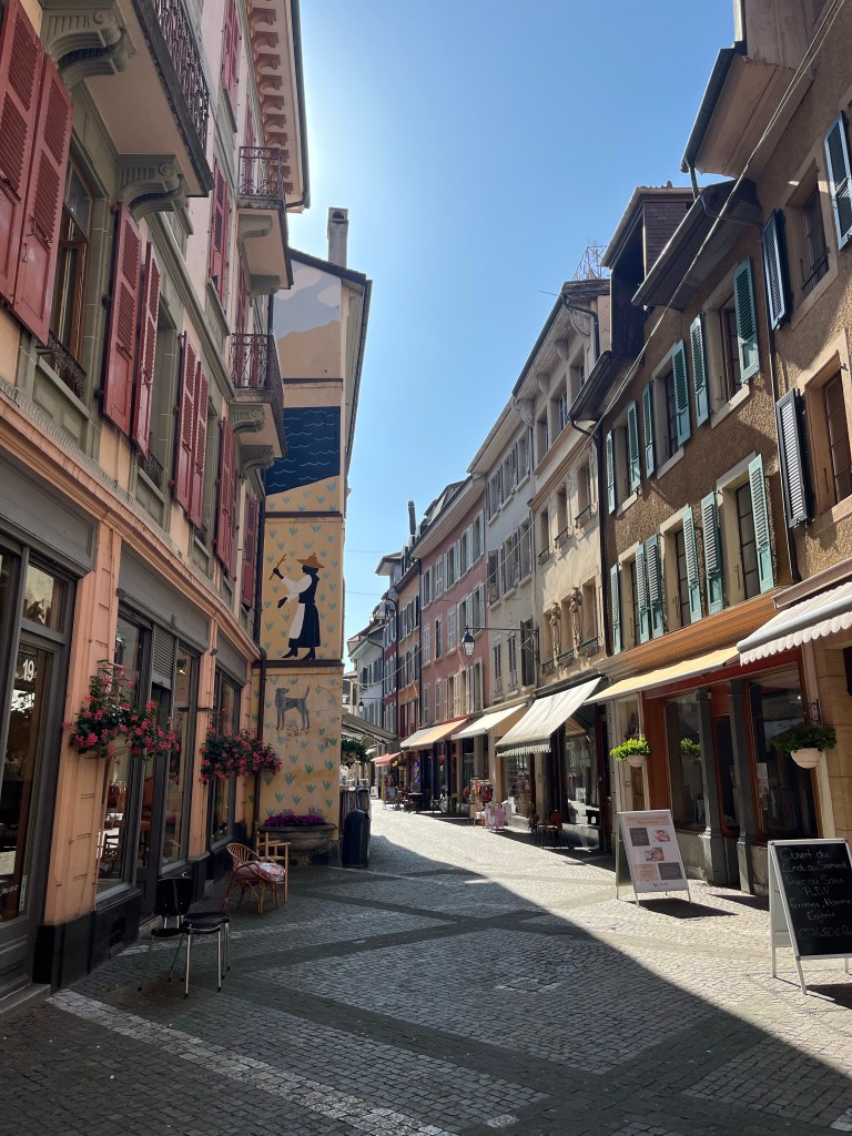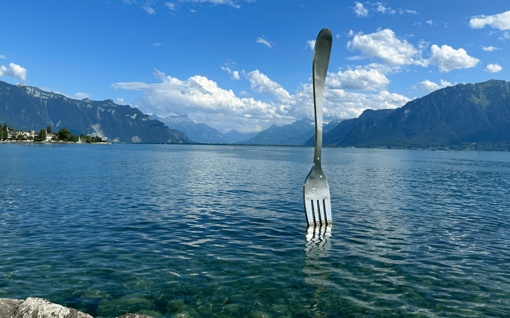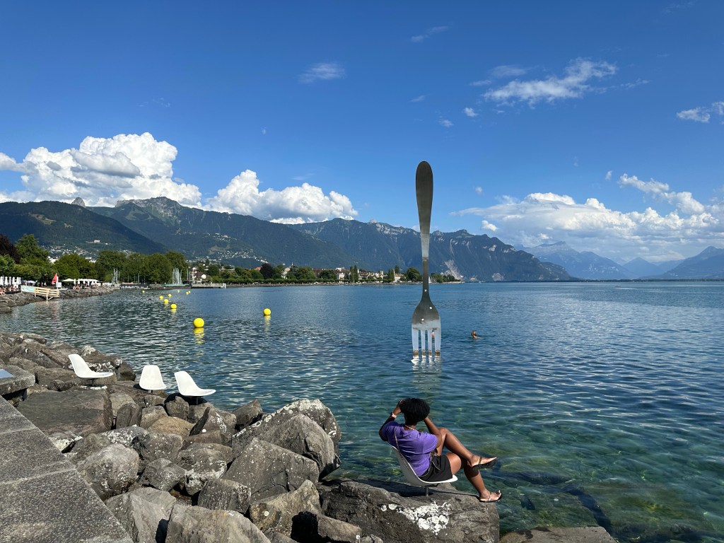 Après notre installation, nous nous sommes rendus au centre ville de Vevey pour se promener et dîner. Nous avons pu découvrir la Vieille ville pleine de charme, les bords du lac avec vue sur les Alpes, la statue de Charlie Chaplin et la Fourchette géante plantée dans le Léman (emblème de Vevey).