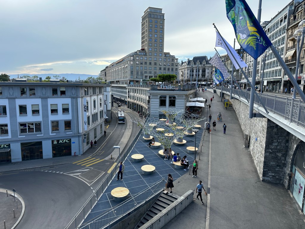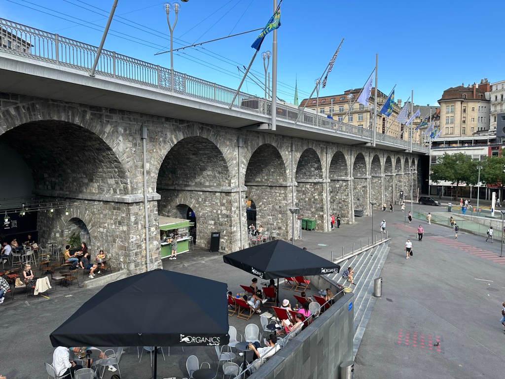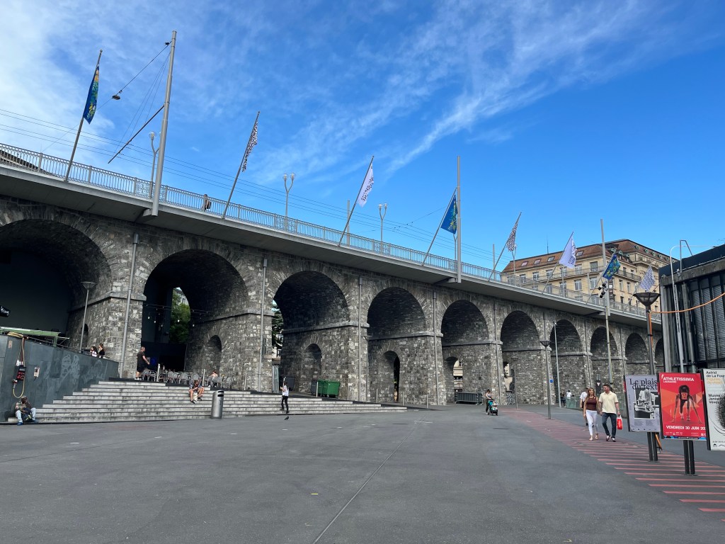 Ensuite, descente à pied vers Flon en passant par la place St-François, puis sur le Grand-Pont, pour finir sur la place de l’Europe.