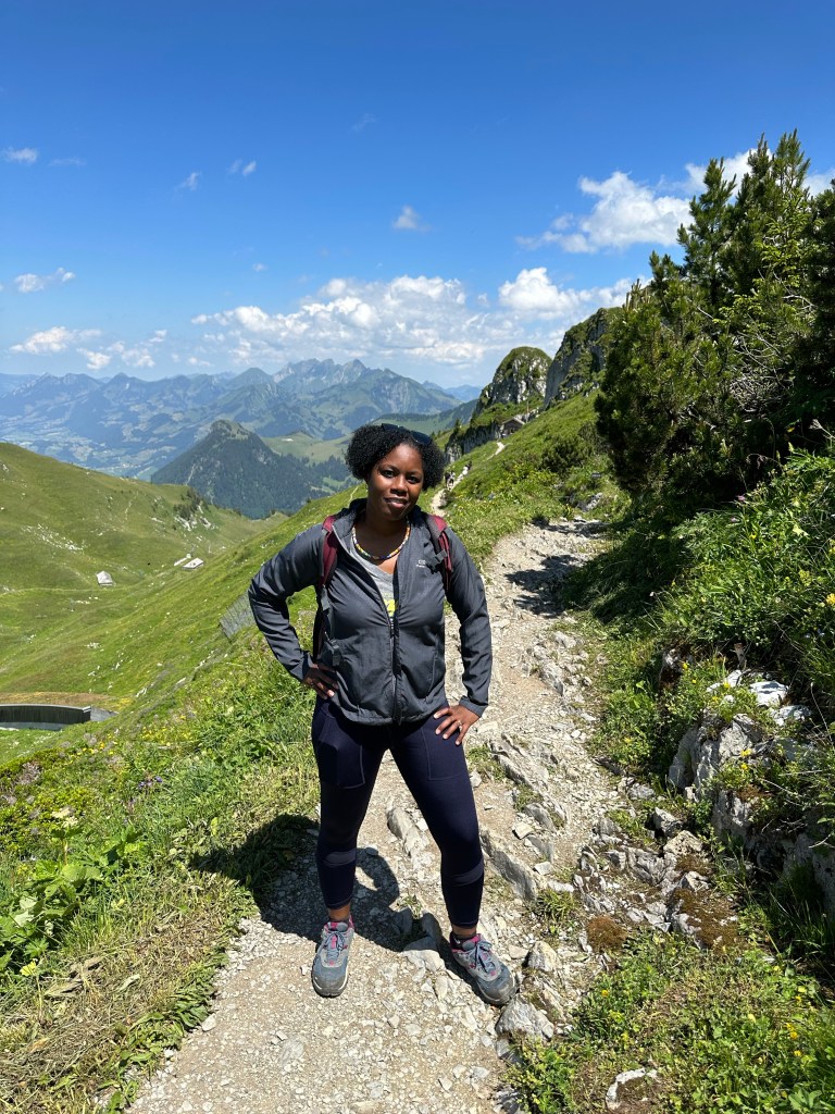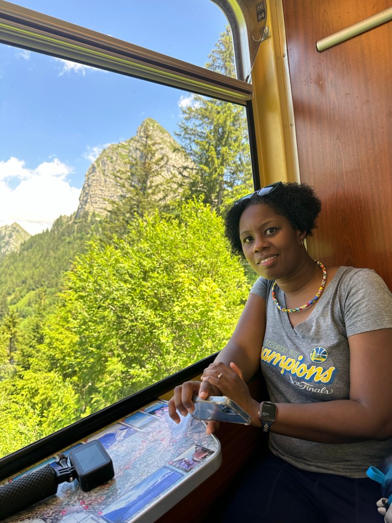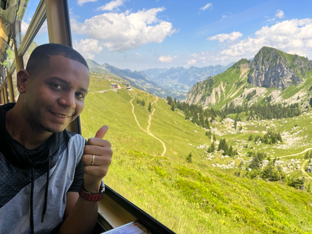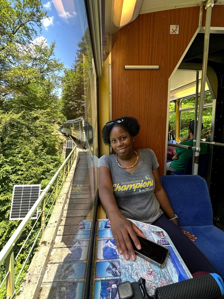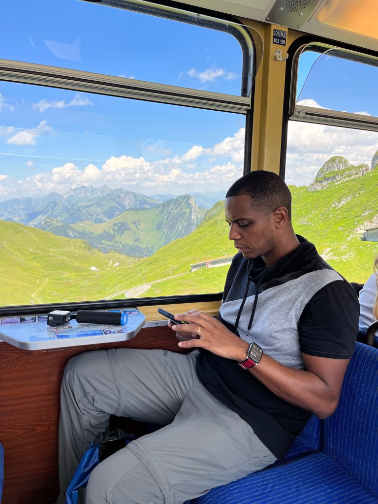 Nous sommes montées jusqu’à Glion où nous avons pris le train à crémaillère qui nous mène aux Rochers-de-Naye. Le train nous a offert de splendide vues panoramiques sur le lac et les montagnes (très belle expérience).