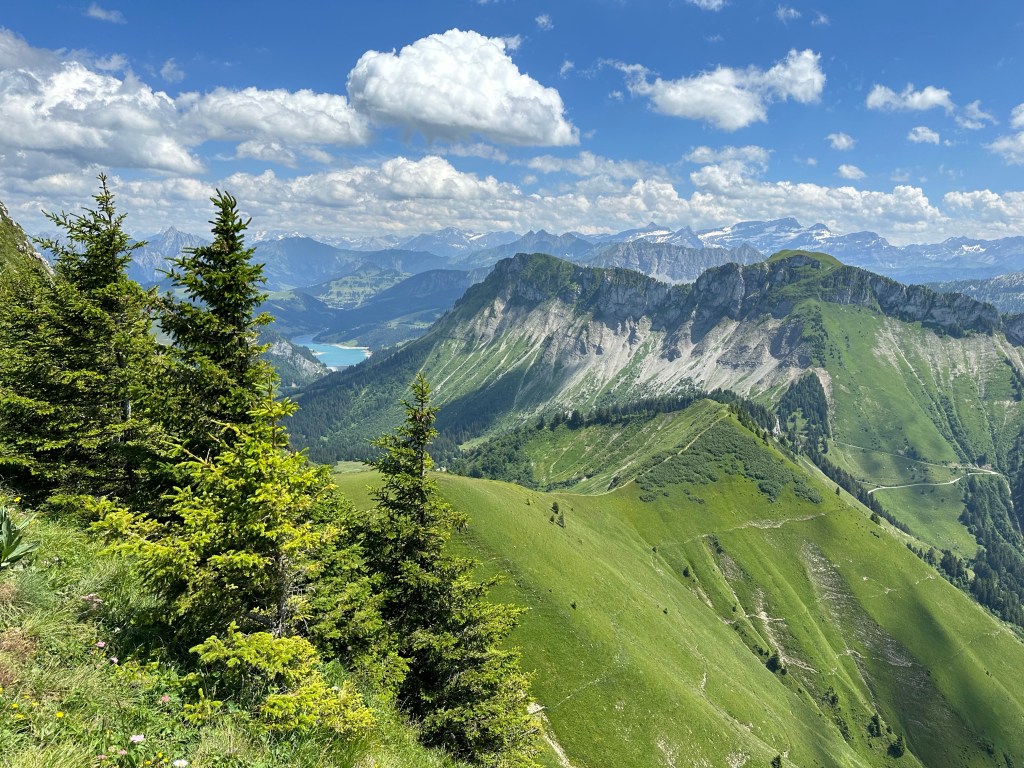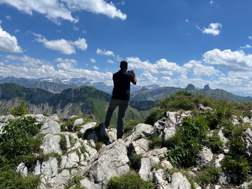 Une fois arrivé au sommet, nous sommes époustouflés par la beauté des paysages. Culminant à 2042 mètres d’altitudes, les Rochers-de-Naye offrent une vue panoramique unique sur les Alpes suisses et françaises, de l’Eiger au Mont Blanc et au Léman. Plusieurs sentiers de randonnées sont possibles. N’ayant pas beaucoup de temps, nous avons essentiellement admiré les paysages au niveau des différents points de vue situés à proximité de la station de train.