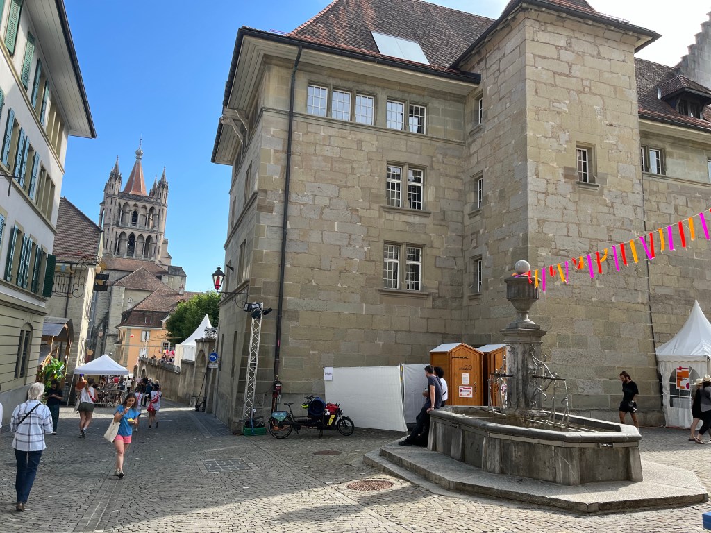 Garé dans un parking à coté du métro, nous avons pris la ligne 2 du métro pour nous rendre au niveau du cœur historique et populaire de Lausanne. Direction place de la Palud puis vers la cathédrale en empruntant les escaliers du marché qui mènent à la Cité.
