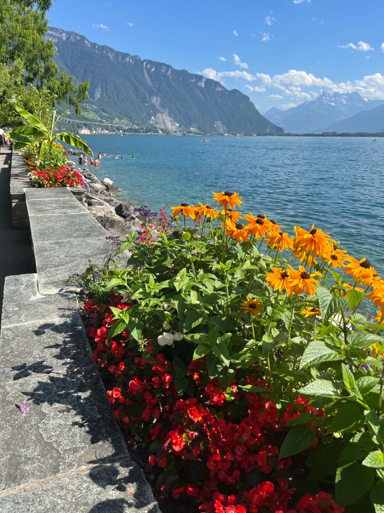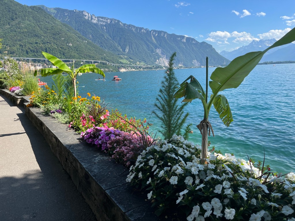 Arrivé à Montreux, petite ballade sur les quais fleuris du bord du lac, le décors est magnifique et bucolique.
