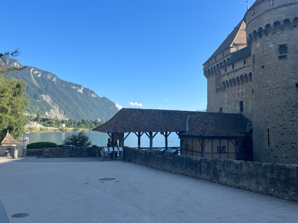 Nous avons fini la journée par une petite promenade au niveau du chateau de Chillon (qui était fermé à notre arrivée). Bâti sur une plateforme rocheuse, le chateau de Chillon parait posé sur le lac Léman.