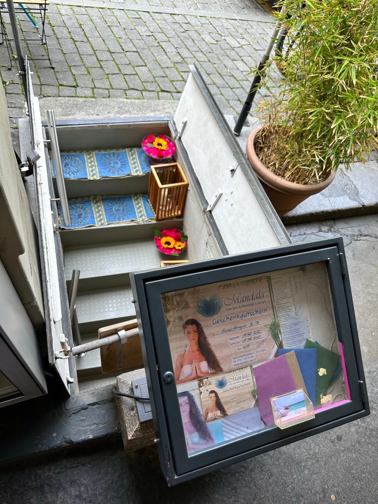Puis nous avons continué la visite à flâner à travers les ruelles de la vielle ville permettant d’apprécier l’architecture des maisons et boutiques, les décorations florales, les fontaines…Il existe également des anciennes caves reconverties en magasin, salon de coiffure ou bars au niveau des sous-sols de la vieille ville.