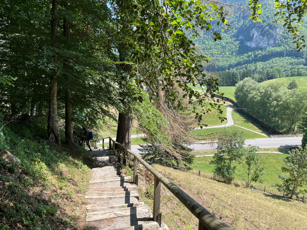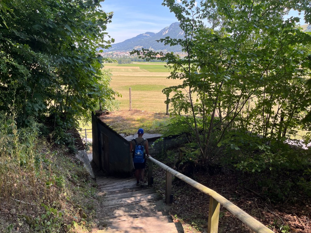 Avant de pouvoir flâner sur les pavés de la cité, nous avons débuté par une petite randonnée d’environ 6,5 km, le long de la rivière (sardine) et les champs. le départ se situe à gauche de l’église ST Théodule. Tout d’abord, le chemin est bordé de grands arbres et conduit jusqu’à des marches permettant d’avoir une vue panoramique sur les montagnes. Ensuite, la balade se poursuit le long de la Sarine. Le point centrale de la randonnée est le fameux « pont qui branle » qui nous permet de traverser la Sarine en toute sécurité. La boucle se termine à travers champs et à proximité de l’aérodrome de gruyère, où nous avons eu la chance de voir atterrir des planeurs.