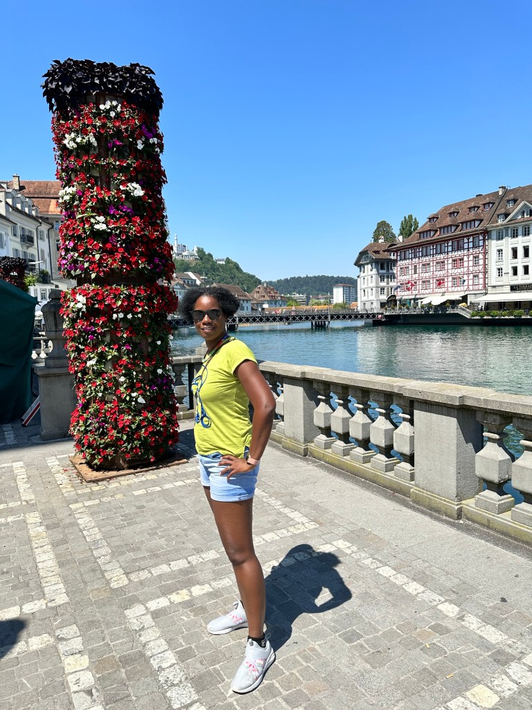 Après 1h30 de route environ depuis Berne, nous sommes arrivés à Lucerne, l’une des plus villes de Suisse. Au pied des Alpes suisses, la ville se situe dans la région de la Suisse centrale au bord du lac des Quatres-Cantons et de la rivière Reuss dans laquelle il se déverse. C’est la septième ville de Suisse et le chef-lieu du canton de Lucerne.