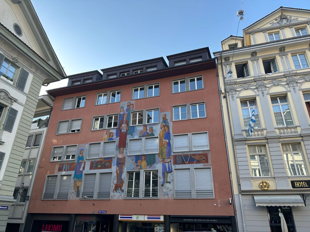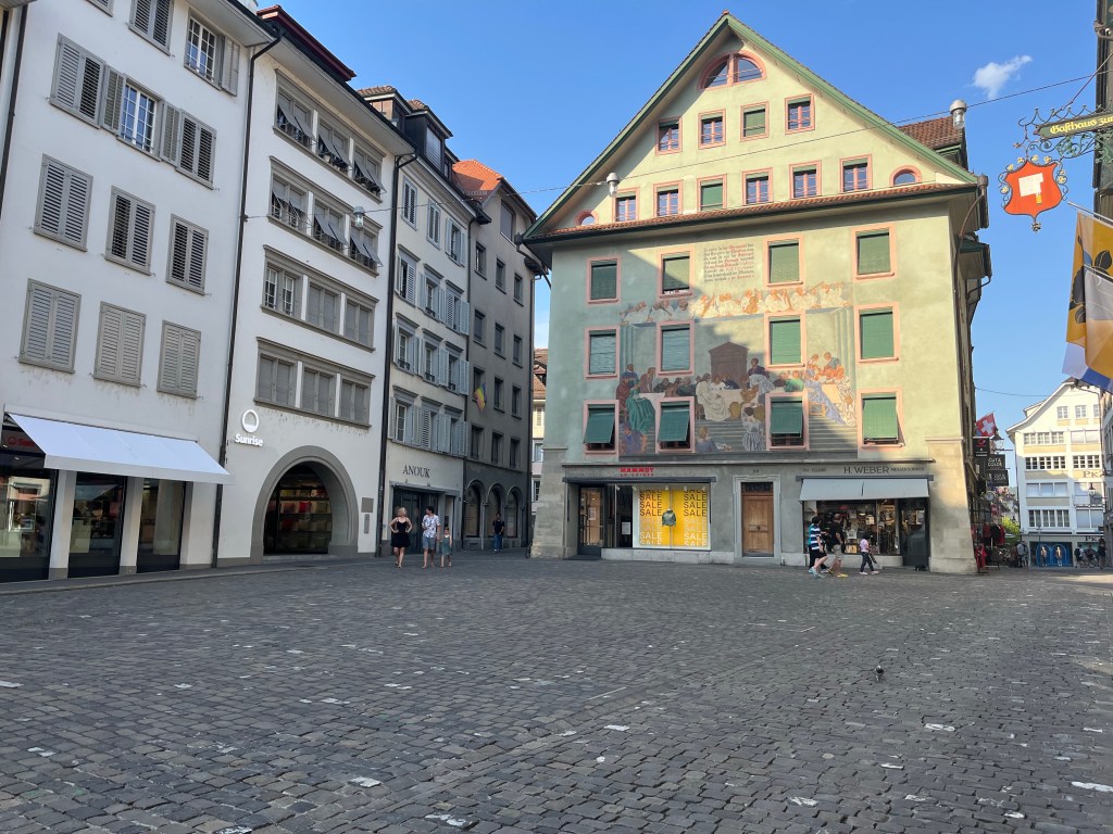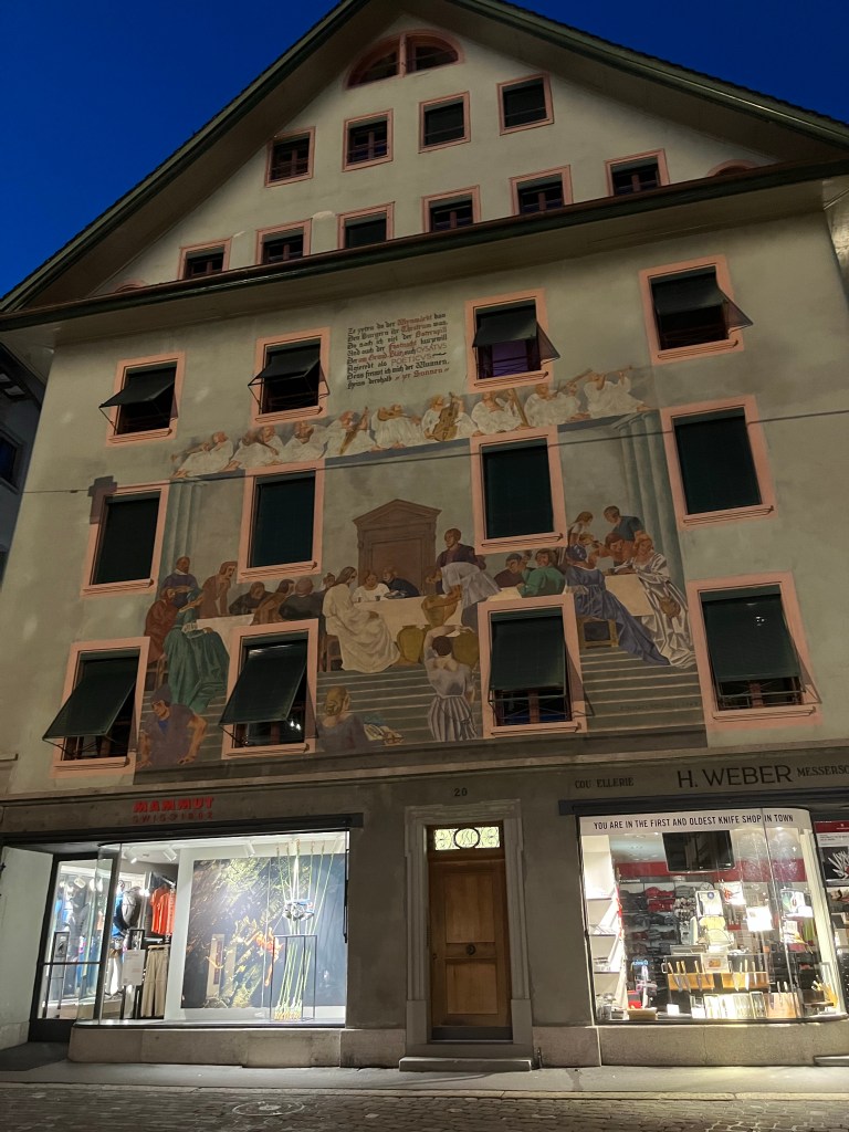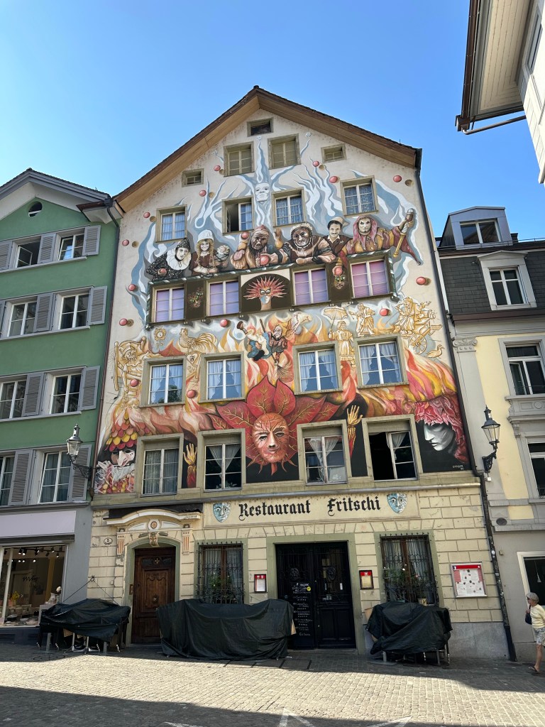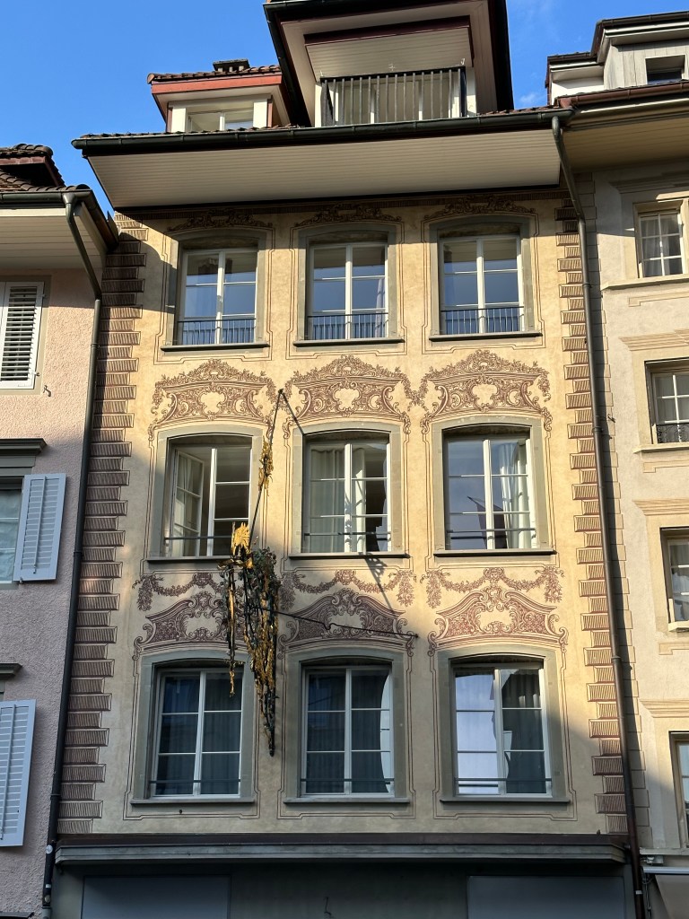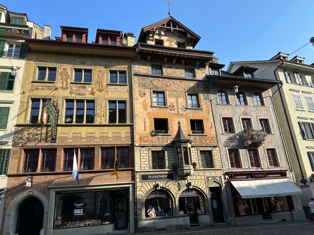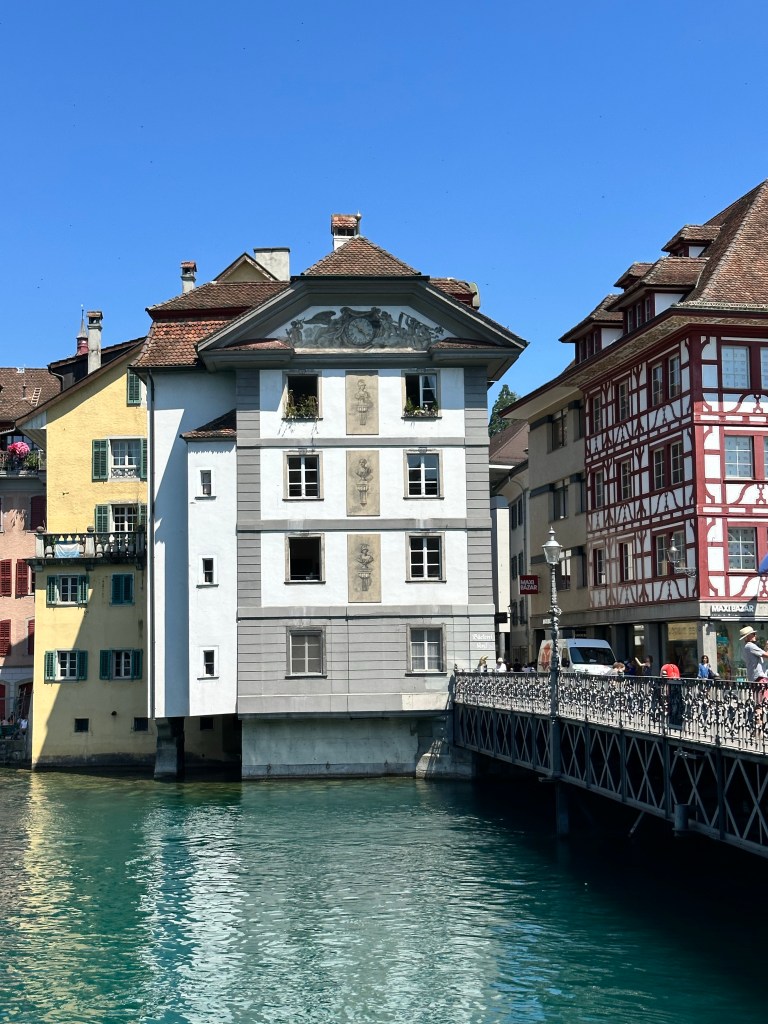 Le centre historique de Lucerne, avec ses ruelles piétonnes et ses places, toutes ornées de bâtiments d’une architecture pittoresque, est très impressionnant. Nous avons été émerveillés par les nombreuses peintures qui décorent les façades des différents bâtiments.