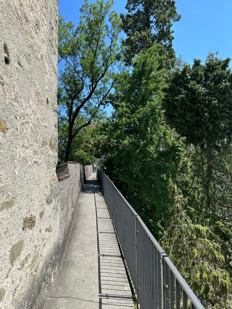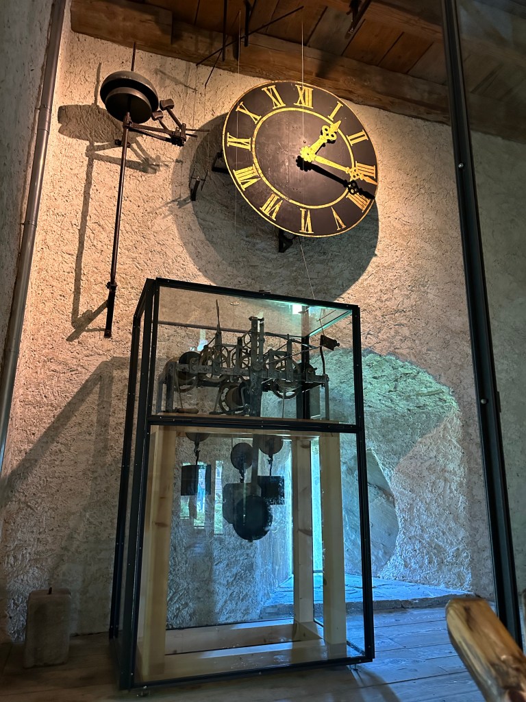 Ensuite, nous sommes montés au niveau de la tour Nolliturm pour atteindre le chemin des remparts. Nous avons emprunté les escaliers raides de la tour Mannliturm (magnifique vue panoramique au sommet). Sur le chemin des remparts, nous avons pris l’entrée de Zytturm, datant de 1535 avec un musée renfermant des horloges antiques.