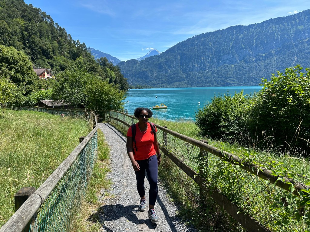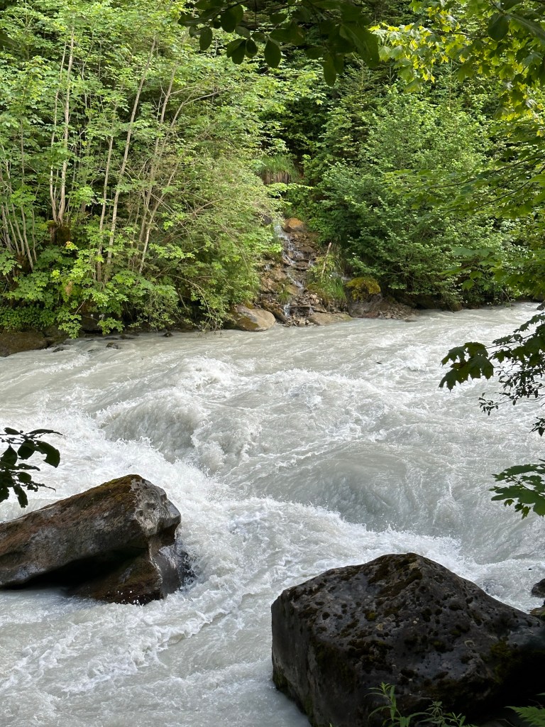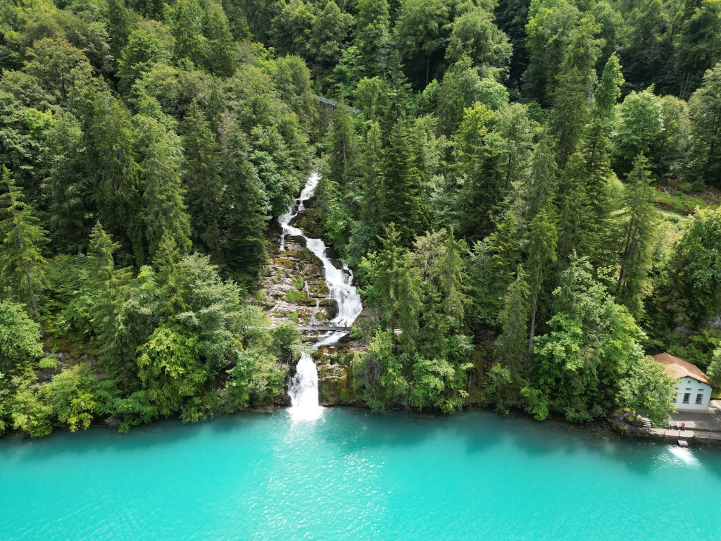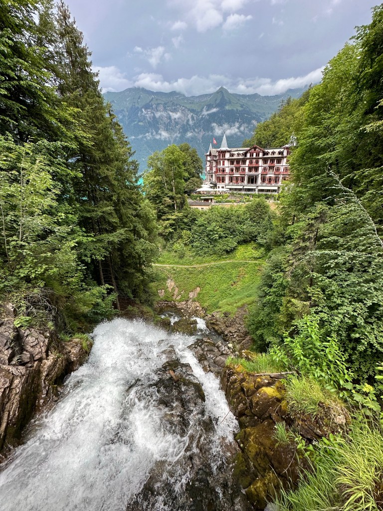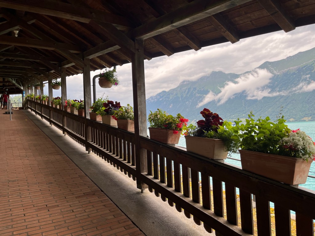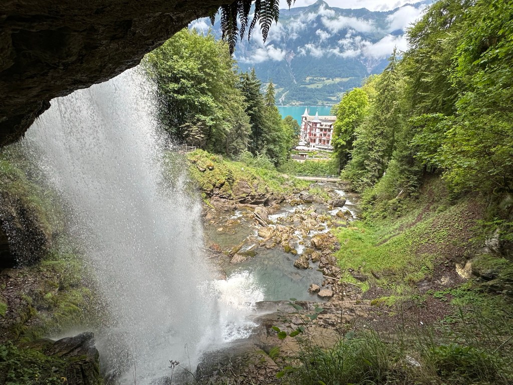 Nous avons commencé par faire une petite randonnée sur le sentier du torrent, afin d’observer les magnifiques cascades blanches qui chutent de 400 mètres en 14 paliers le long du château, jusqu’au lac Brienz. Le sentier permet de passer derrière l’imposante cascade pour admirer le torrent tout en se rafraîchissant au contact de l’écume. Le lac Brienz est le plus profond et le plus froid des grands lacs de Suisse composé de sédiments de la fonte des glaces des hautes alpes qui lui confèrent son incomparable nuance de bleu, turquoise claire.