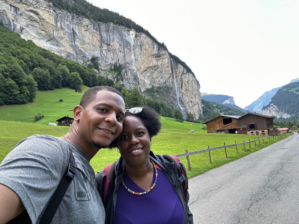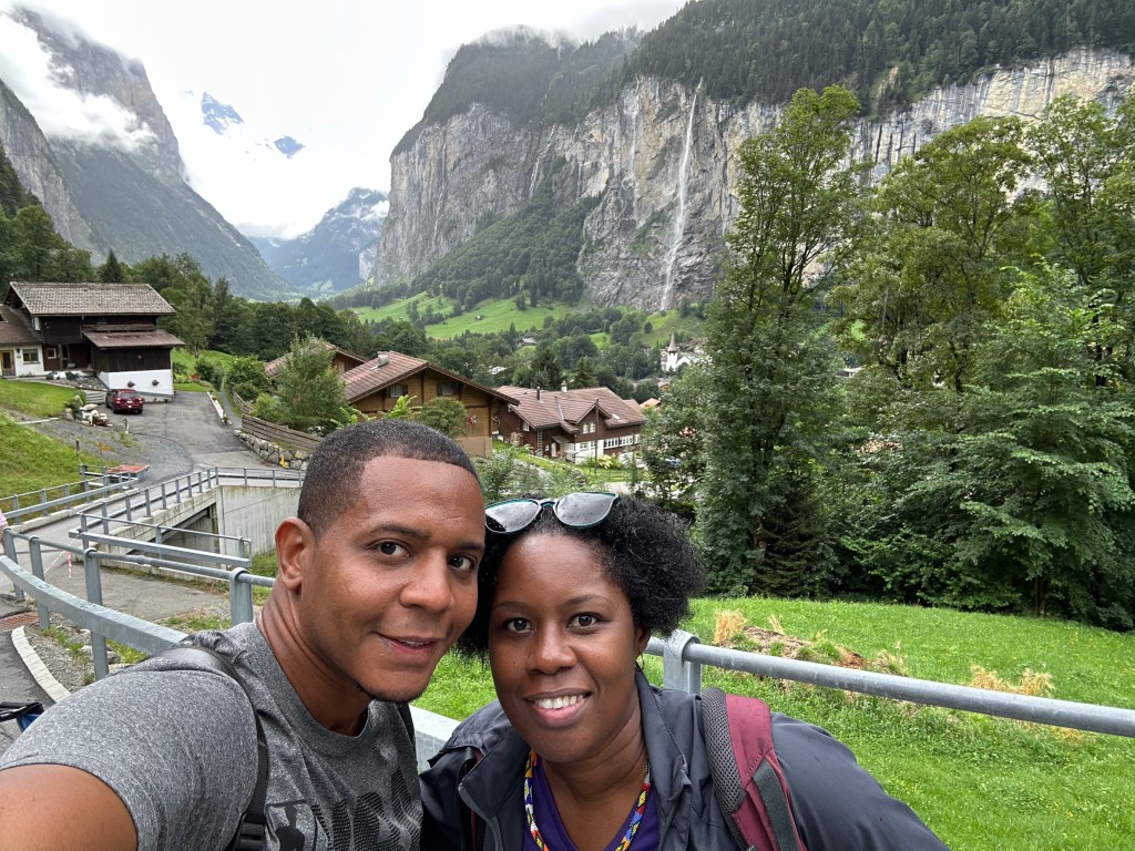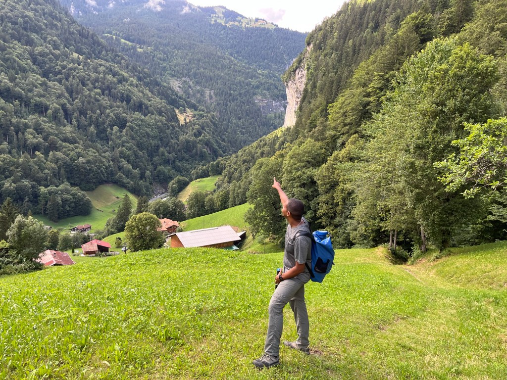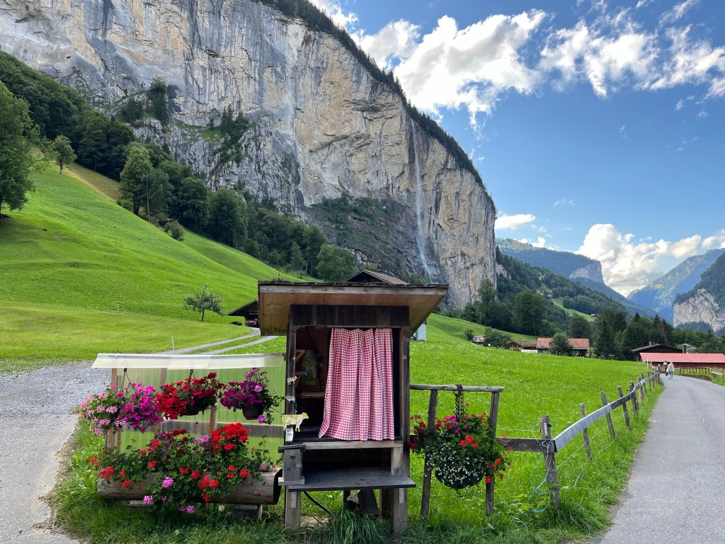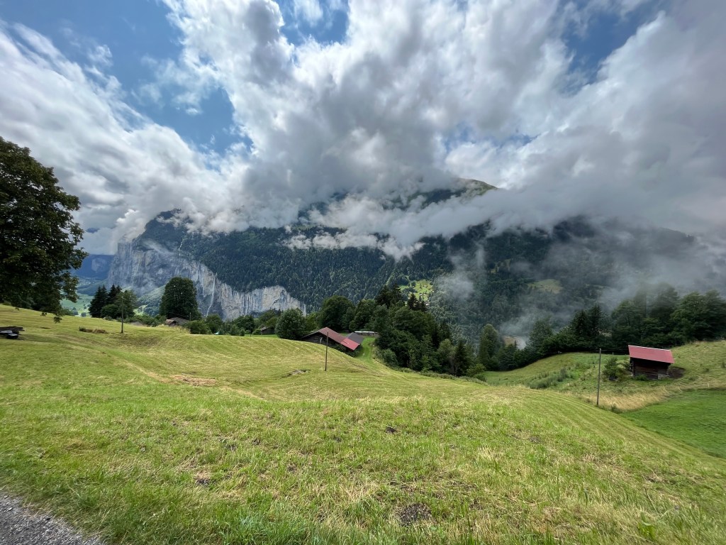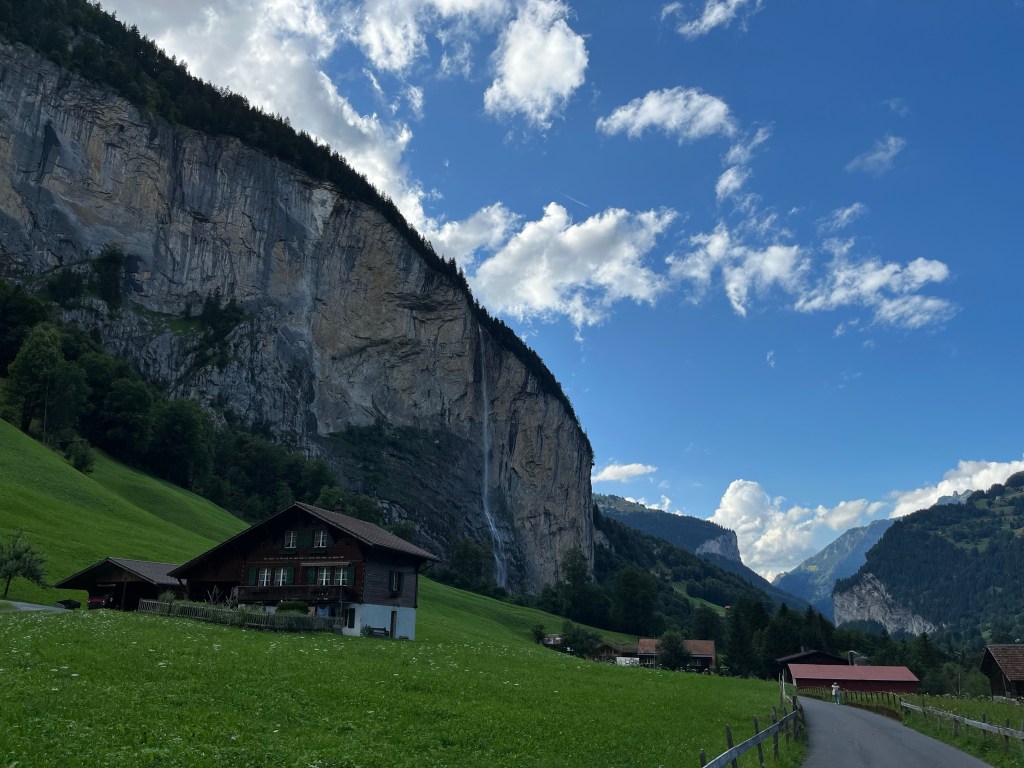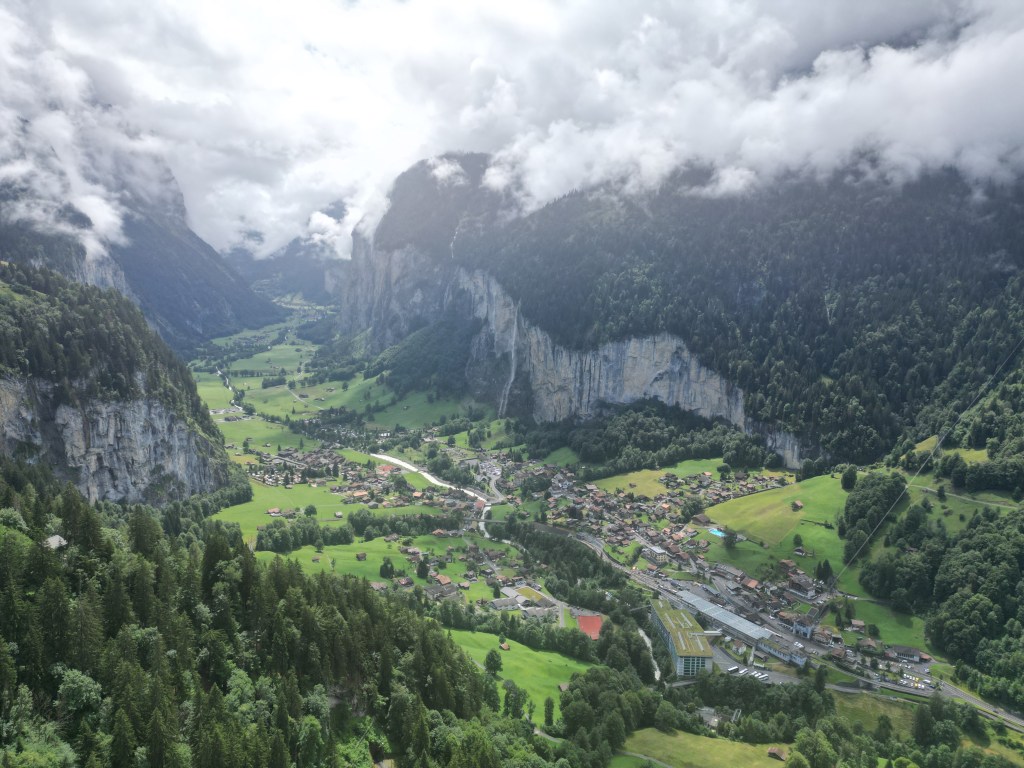 Le lendemain, direction vers le village de Lauterbrunnen pour une randonnée dans les montagnes. Nichée dans l’une des plus impressionnantes vallées alpines, entre de gigantesques parois rocheuses et de hauts sommets, avec ses 72 cascades rugissantes ainsi que ses alpages fleuris, la vallée de lauterbrunnen est l’une des plus importante réserves naturelles de Suisse. Ce qui inspira Tolkien pour la comté des hobbits. Situé à 13km d’interleuken, nous avons pris à peine 15 minutes en voiture pour nous rendre au village de Lauterbrunnen. A peine arrivés, nous sommes bercés par la magie des lieux, avec ses immenses cascades le long des parois rocheuses, ses prairies, les montagnes et les petites maisons fleuris, nous ne pouvons qu’apprécier la beauté des paysages.