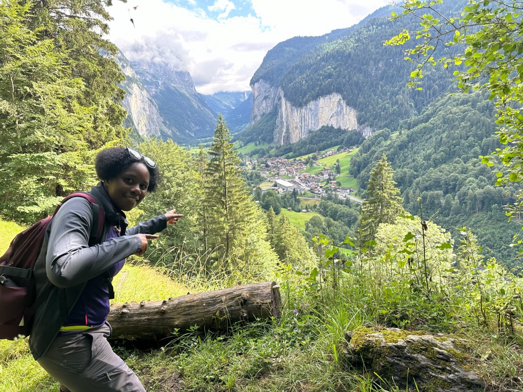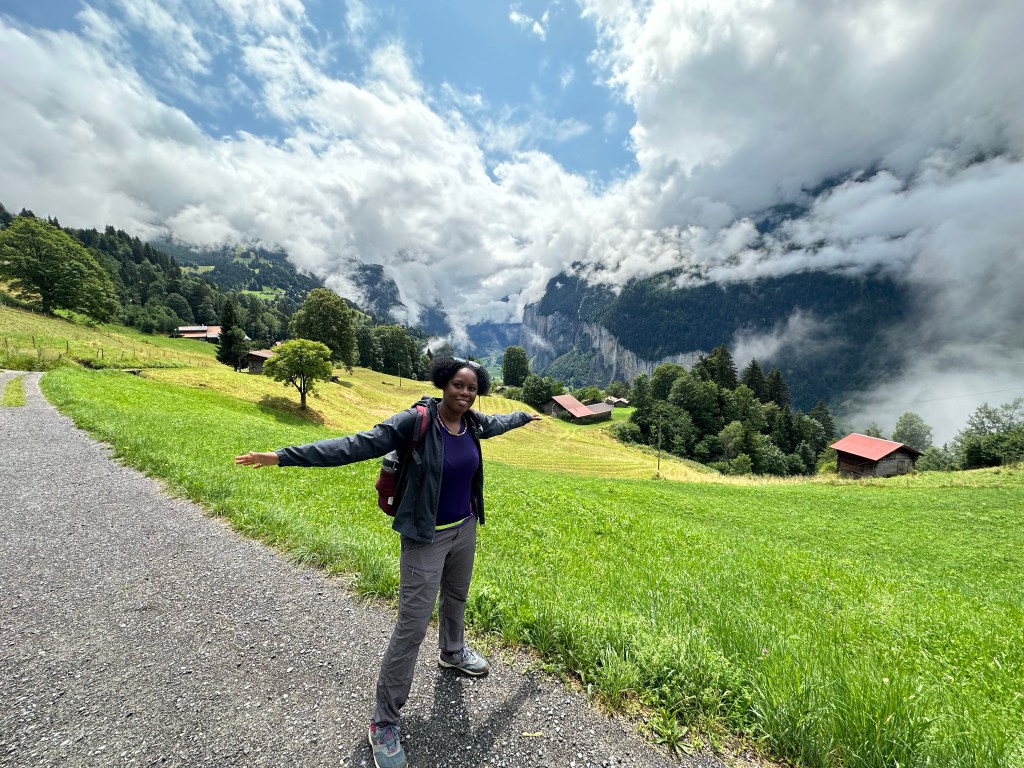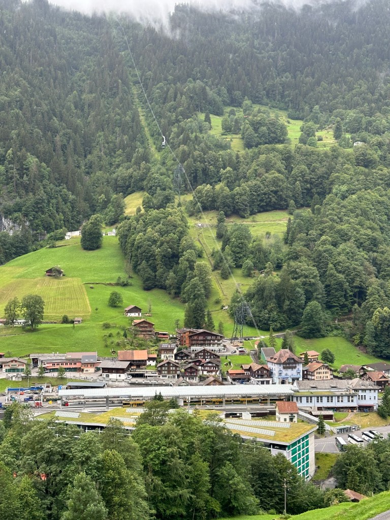 Nous avons commencé la randonnée par une ascension jusqu’au village de Wengen. Il a fallu grimper une pente raide sous la pluie, avec un dénivelé de plus de 450 m, très éprouvant mais offrant quelques superbes vues sur la vallée.