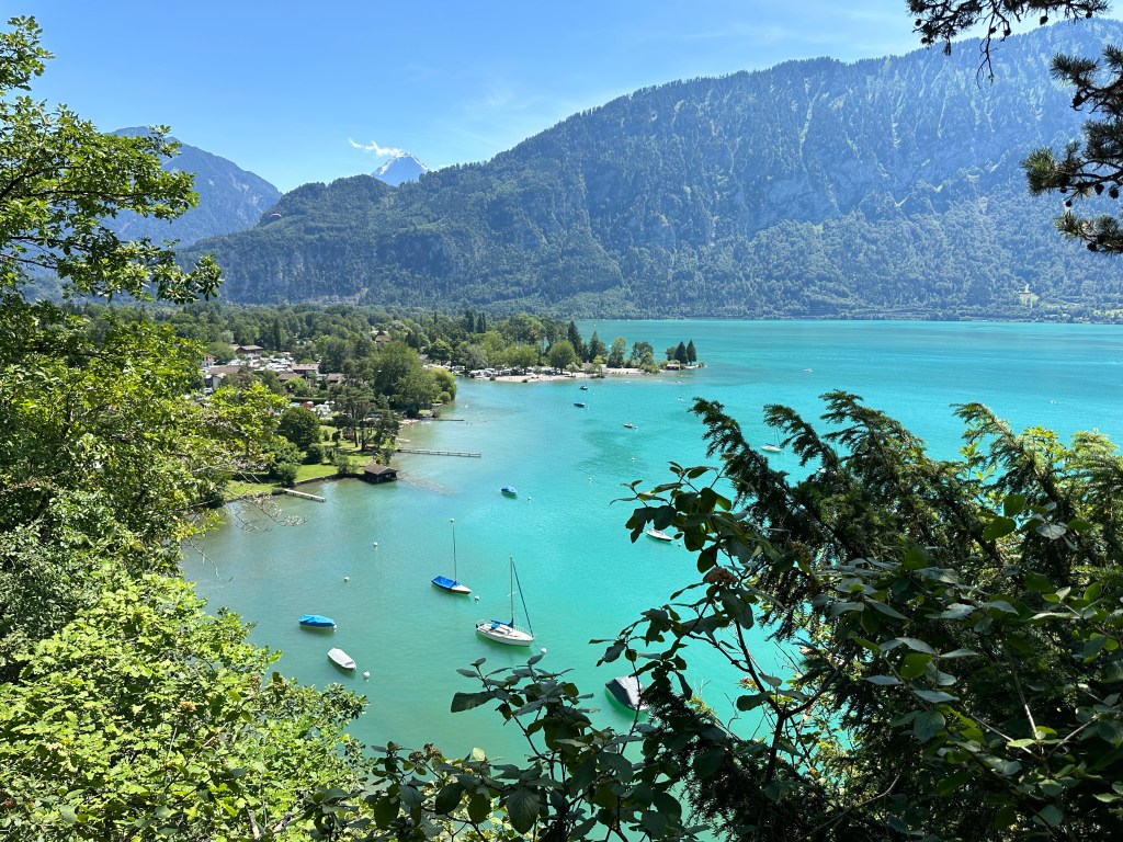 Pour notre prochaine étape après la ville de Lucerne, nous nous sommes rendus à la ville d’Interlaken (environ 1 heure de route) où nous avons dormi pendant 3 nuits. Interlaken se trouve dans l’Oberland bernois, dans une plaine alluviale entre le lac de Thoune et le lac de Brienz. Avant de nous rendre à Interlaken, nous avons visité le parc de Giessbach situé sur le lac de Brienz.