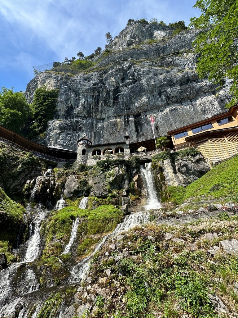 Arrivés aux grottes, nous avons profité pour faire la visite. Les grottes de St Beatus se trouvent au-dessus du lac Thoune. Il s’agit d’une merveille de la nature qui date de plusieurs millions d’années. La visite permet de plonger dans un univers géologique féérique sur un circuit éclairé d’1 km, composés de cavités de différentes formes et couleurs avec des stalagmites, stalactites ainsi que des cascades qui se déversent hors de la grotte, sur le lac Thoune…