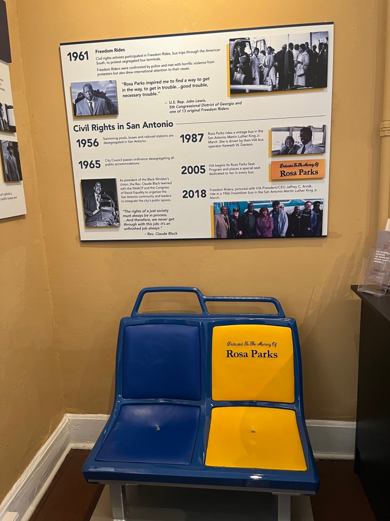 Après notre visite de la mission San José, nous sommes retournés en bus vers le centre-ville pour découvrir le petit musée destiné à la culture Afro-américaine de San Antonio. Fondé en 2017, le SAAACAM partage et préserve l’héritage culturel des Afro-américains dans la région de San Antonio. A travers 400 ans, le musée retrace l’histoire et l’impact des descendants africains dans le sud et le centre du Texas. Il est prévu que le musée se développe et change de lieu pour les années à venir.