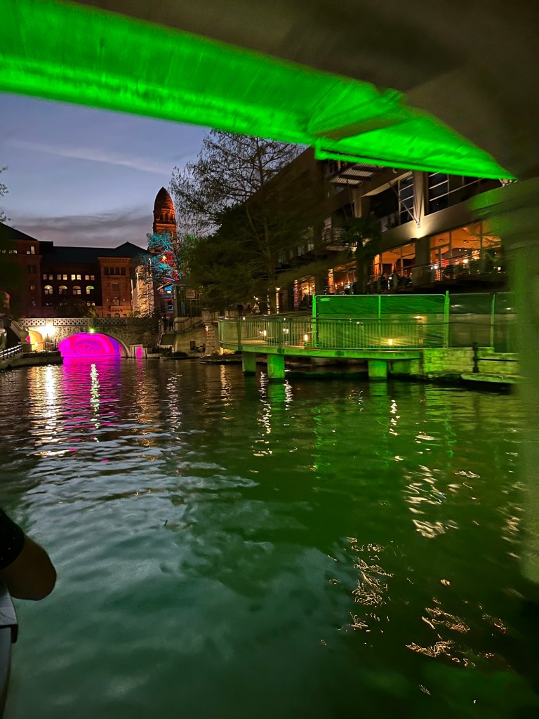Petite balade nocturne en bateau le long de la rivière pendant 30 minutes environ, nous permettant d’admirer les lumières de la « River Walk ».