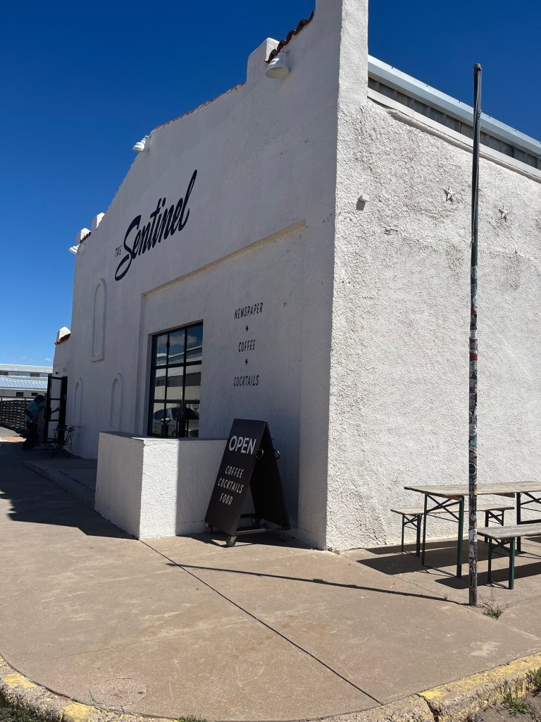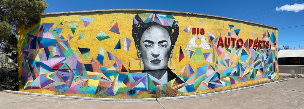 Ensuite, après un petit tour à pied permettant de voir la fresque murale de Frida Kahlo et quelques expositions d’art extérieur, visite de Ballroom Marfa qui est un centre événementiel dédié à l’art visuel, à la musique et au cinéma.