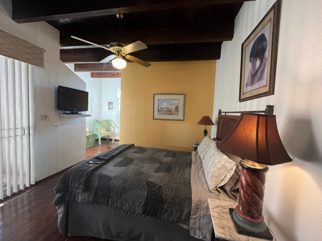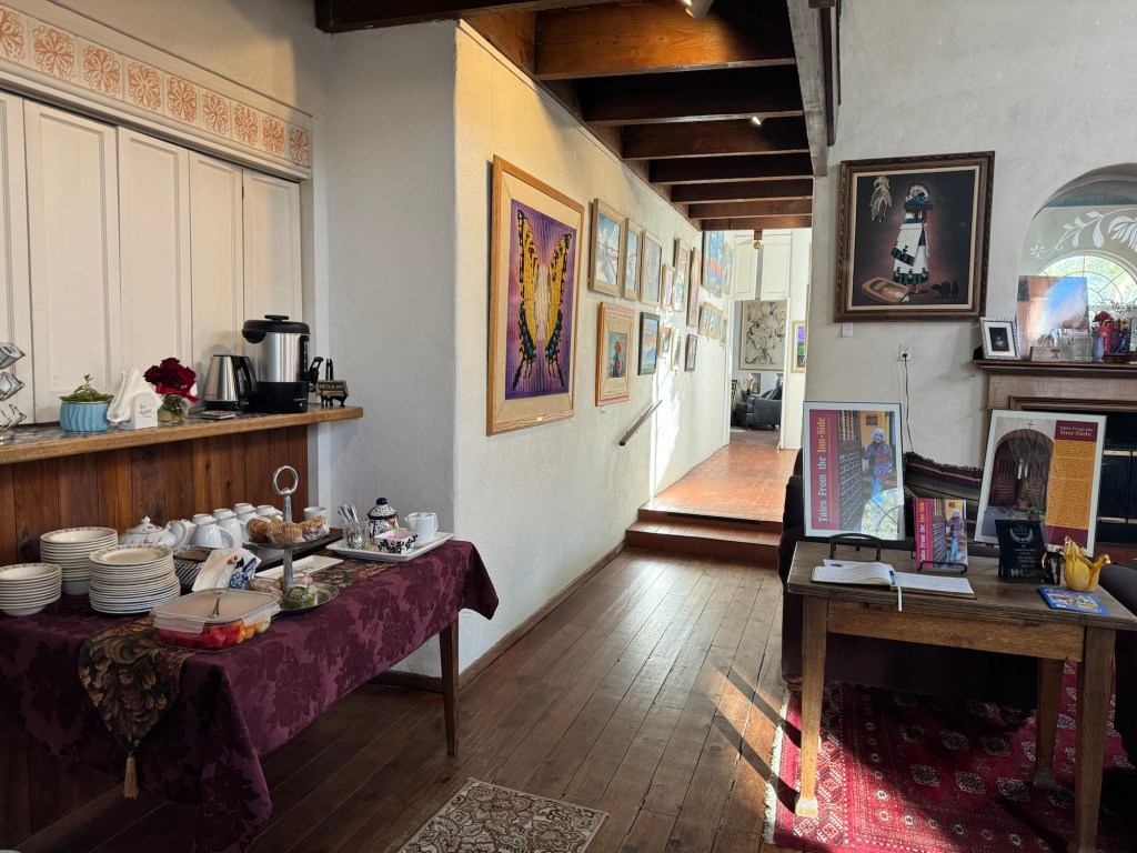 Il s’agit d’une ancienne maison datant de plus de 100 ans qui a été restaurée pendant plusieurs années par un couple : Linda et Jerry Lundeen. Linda est originaire du Nouveau-Mexique et l’une des principaux marchands d’art de l’Etat. Jerry, qui a grandit dans une réserve indienne dans le Dakota du Nord, est architecte. La maison d’hôte dont la restauration s’est terminée en 1985, combine le charme de l’Ancien monde et l’hostilité occidentale avec l’une des plus grandes galeries du Sud-Ouest. Plusieurs tableaux sont exposés avec des prix de vente. Il y a plusieurs salles et espaces où l’on se reposer, lire, regarder la télé où tout simplement se contenter de contempler les oeuvres artistiques et l’architecture. De plus, la maison d’hôte sert chaque matin un petit déjeuner diversifié fait maison, un délice!