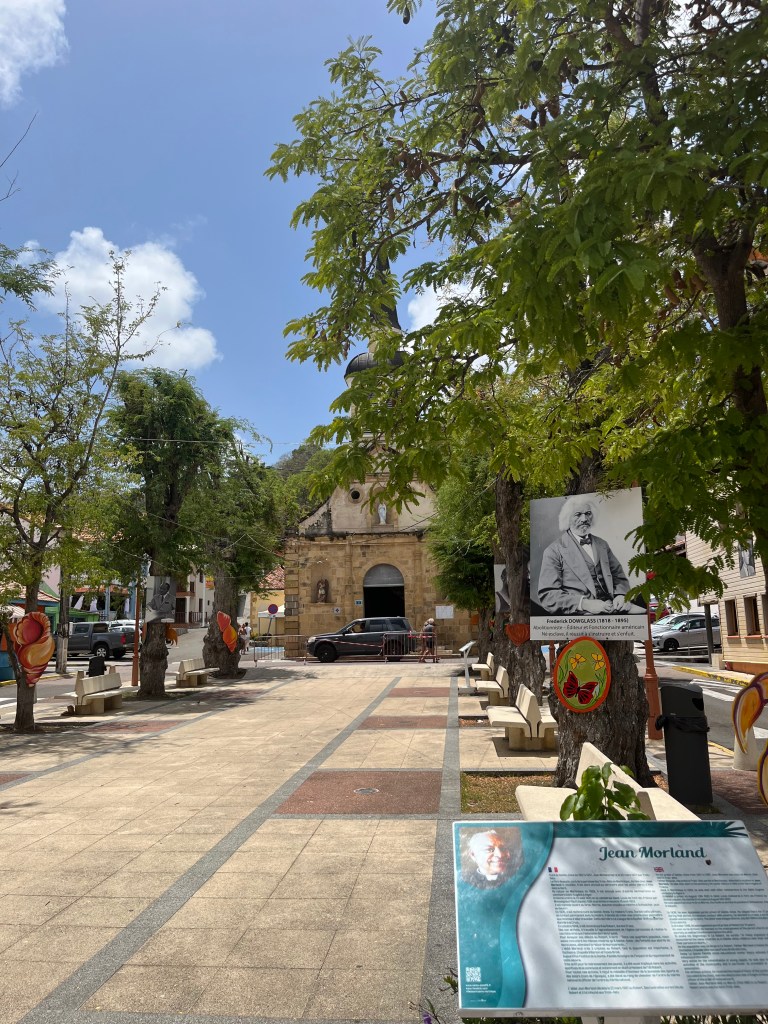 4- Bourg de Saint-Anne et hommage aux figures noires : Après 2h48 de marche, vous arrivez à la Pointe du Marin, puis entrez dans le bourg de Saint-Anne. Ce charmant bourg abrite une magnifique église datant du 18e siècle, un véritable trésor architectural. En parcourant les rues, vous découvrirez aussi des hommages aux grandes figures noires, rappelant l’histoire et la culture de la Martinique et d’ailleurs.