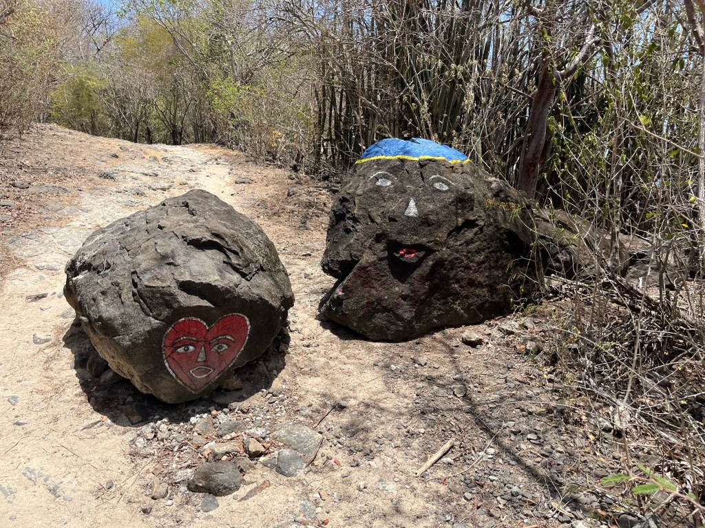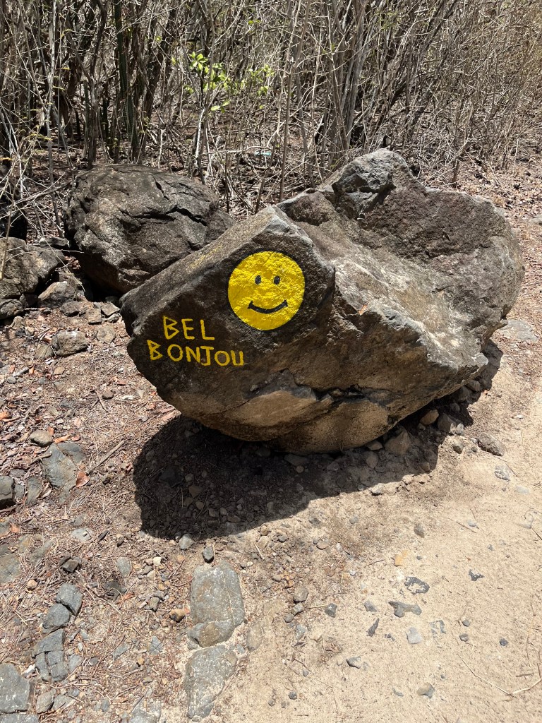 Ces grosses pierres marquent le retour sur la plage des salines et la fin de la randonnée.