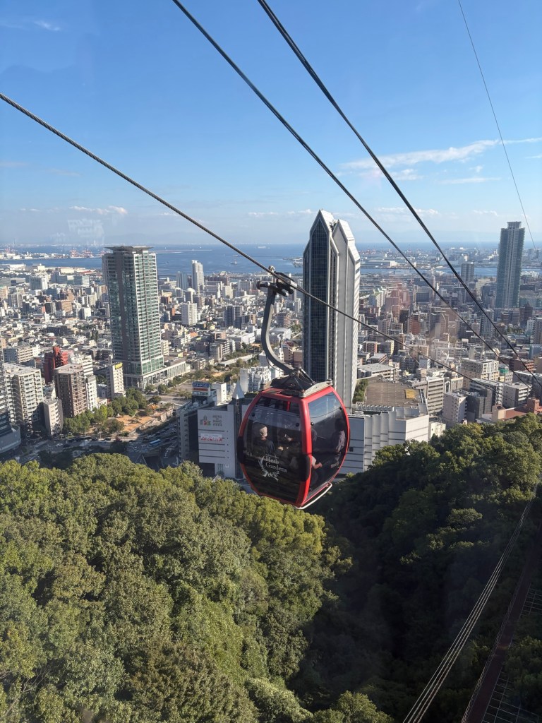 A notre retour de l’observatoire, nous prenons le téléphérique pour la visite du jardin aromatique de NUNOBIKI (l’entrée du parc se situe à 5 minutes de marche de la gare de Shin-Kobe). Le téléphérique nous amène dans les hauteurs, au sommet du jardin aménagé avec plateforme très charmante où on peut se poser pour manger, boire un verre, ou encore découvrir des magasins d’herbes aromatiques et médicinales.