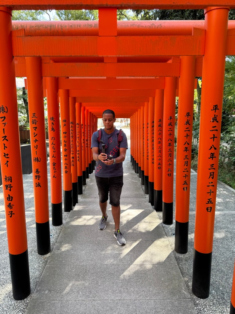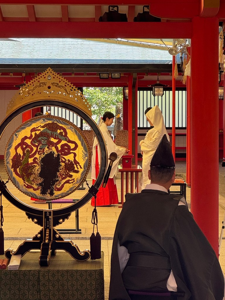 Situé en plein centre-ville, à quelques mètres de notre hôtel, nous profitons pour visiter ce magnifique sanctuaire (entrée gratuite, goshuin à 300 yens). Fondé en 201 après J-C, ce sanctuaire a des liens profonds avec Kobe et accueille de nombreux festivals majeurs tout au long de l’année. Ainsi nous assistons à une cérémonie de mariage au cours de notre passage.