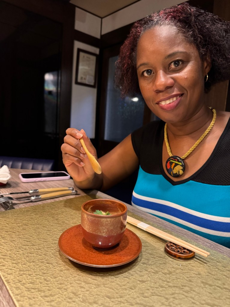 Nous ne pouvons pas repartir de Kobe sans goûter la fameuse viande de Kobe. Pour cela nous avons réservé dans un petit restaurant gastronomique très intimiste (où l’on cuisine devant nous). On nous sert 7 plats avec explication dont la fameuse viande de Kobe. Tout est vraiment délicieux.