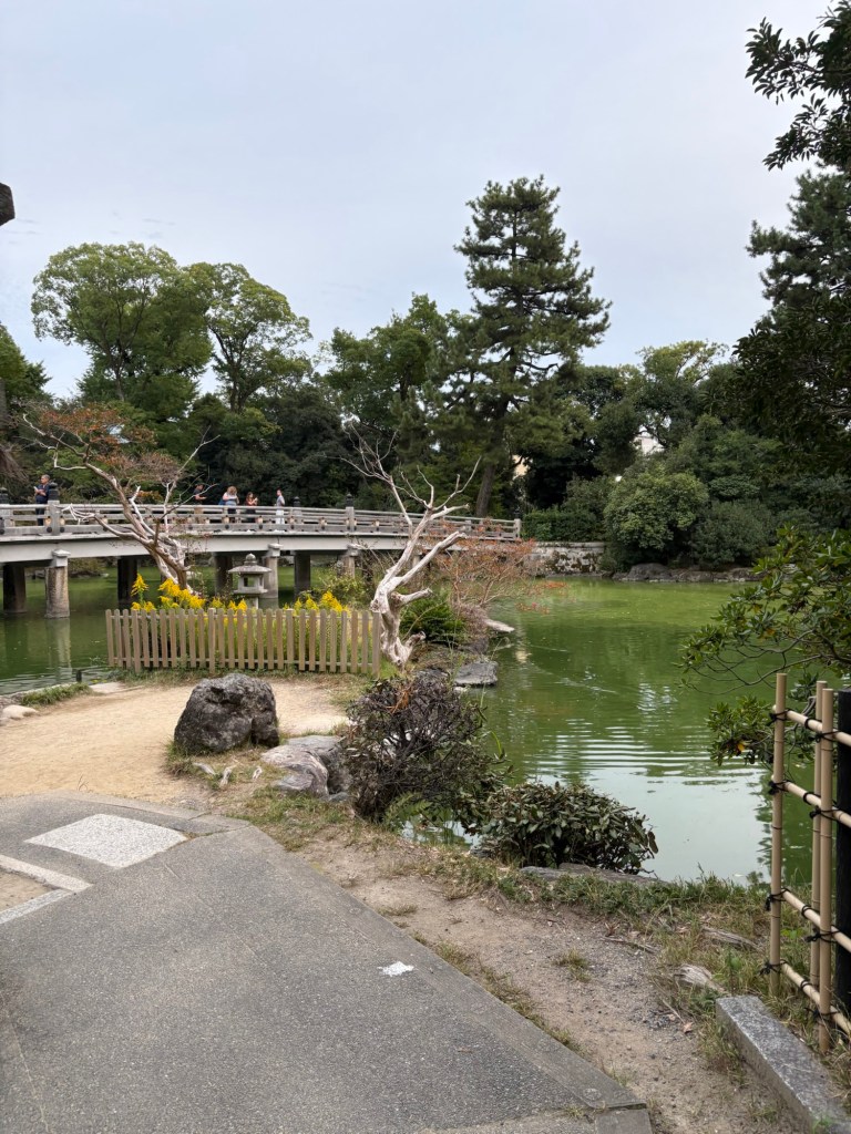 Nous poursuivons notre balade vers les jardins impériaux de Kyoto, un vaste espace de verdure en plein cœur de la ville. Entre les pins soigneusement taillés, les petits ponts de pierre et les sentiers ombragés, le temps semble suspendu. C’est ici qu’on mesure à quel point la nature est un art au Japon.