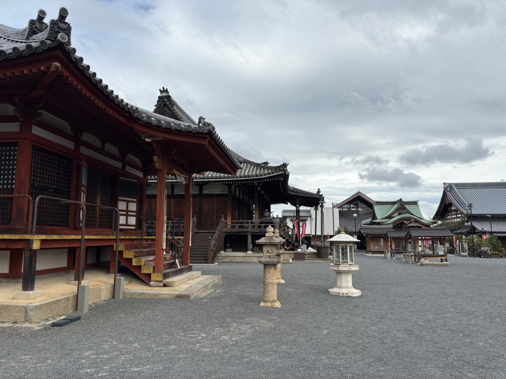 Le complexe possède une porte colossale Sanmon (22 mètres de haut), une douzaine de temples, des jardins et un grand acqueduc (construction insolite dans un temple).