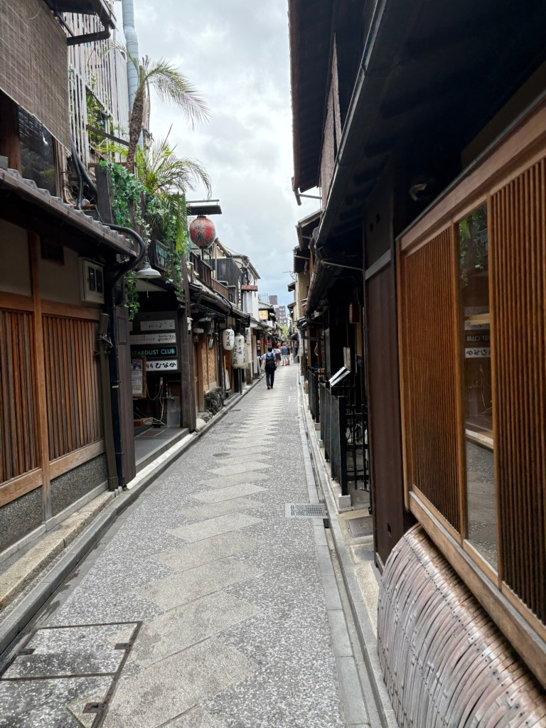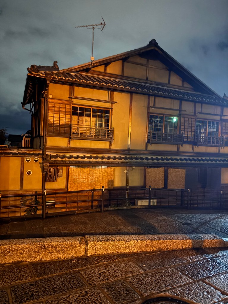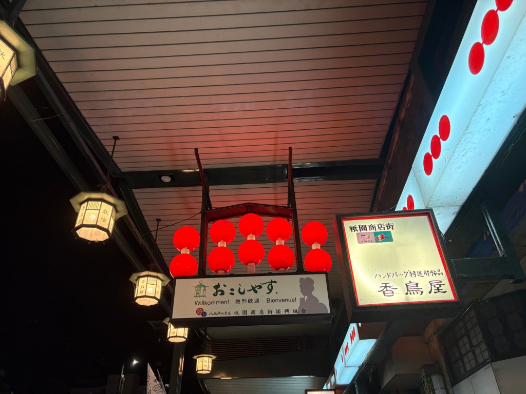 De retour à Kyoto en fin de journée, nous terminons notre aventure par une balade dans le quartier de Gion, l’un des plus emblématiques de la ville. Les ruelles pavées, les maisons de thé (ochaya) et les façades en bois plongent les visiteurs dans le Japon d’autrefois.