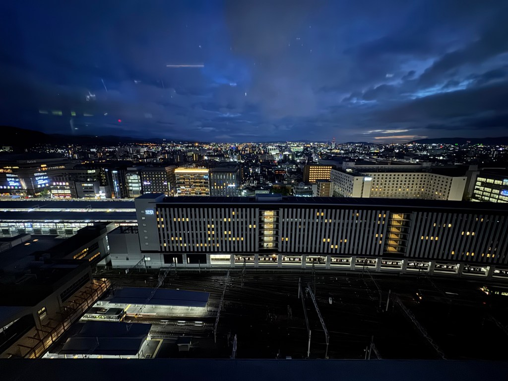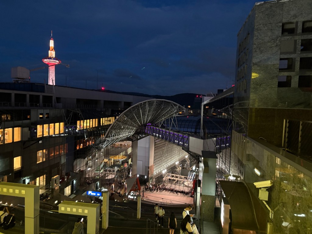 Pour clore cette journée riche en découvertes, nous grimpons jusqu’au Sky Garden et skyway permettant d’avoir des points de vue panoramique sur la ville de Kyoto. D’ici, la ville s’étend à perte de vue, baignée de lumières dorées. Un moment suspendu, parfait pour se rappeler à quel point Kyoto est une ville à la fois ancienne et moderne.