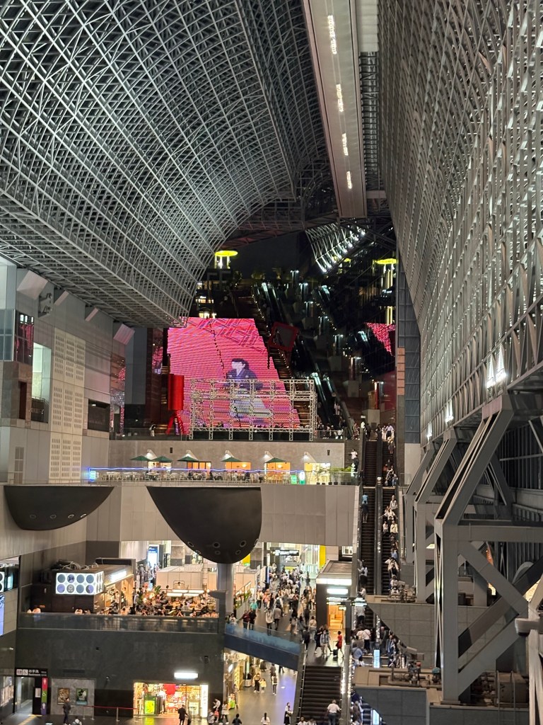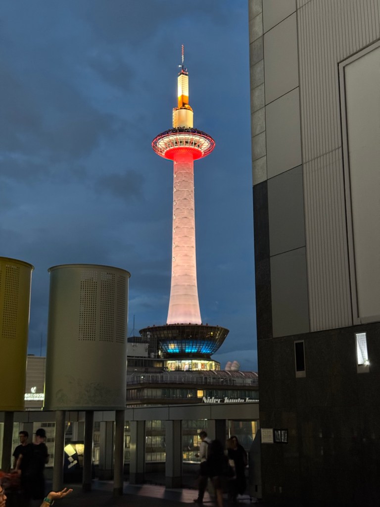 La journée se termine dans une ambiance plus urbaine : les rues animées autour de la gare de Kyoto. Entre restaurants, boutiques et la majestueuse Kyoto Tower illuminée, nous profitons de la soirée pour déguster un délicieux dîner japonais et observer la ville qui s’endort lentement sous un ciel d’encre.