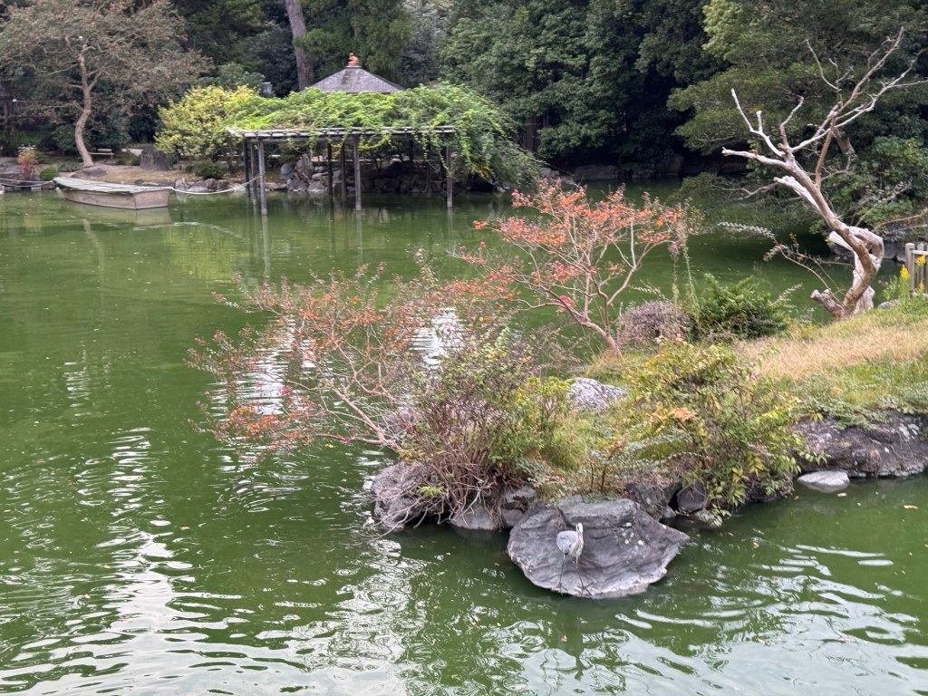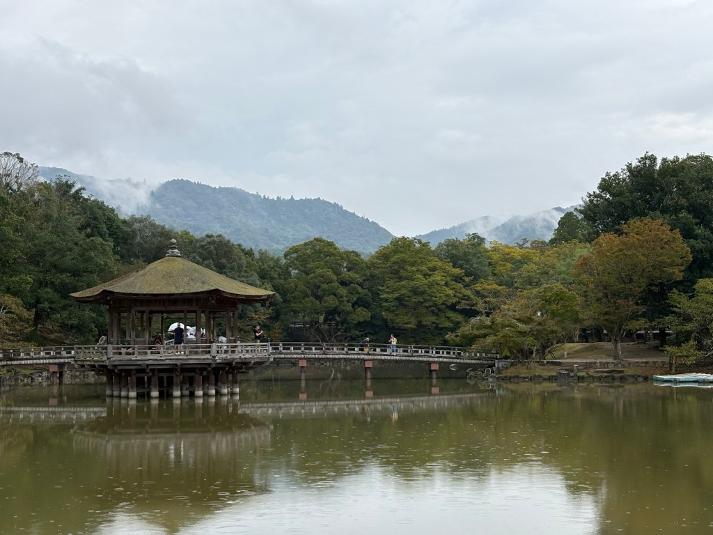 Sur le chemin du retour, nous passons au niveau du pavillon Ukimido, endroit discret où l’on peut profiter du paysage et de l’atmosphère paisible, malgré la pluie.