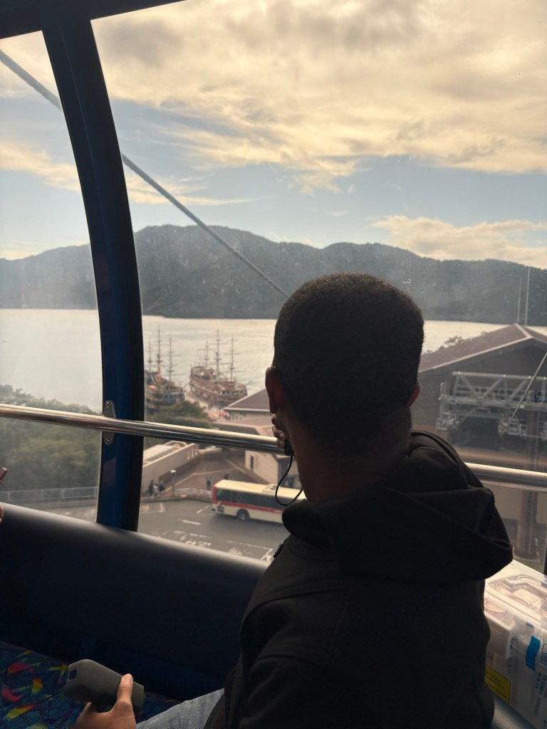 Pour rejoindre notre prochaine étape, nous montons à bord du téléphérique de Hakone, un autre incontournable de la région.