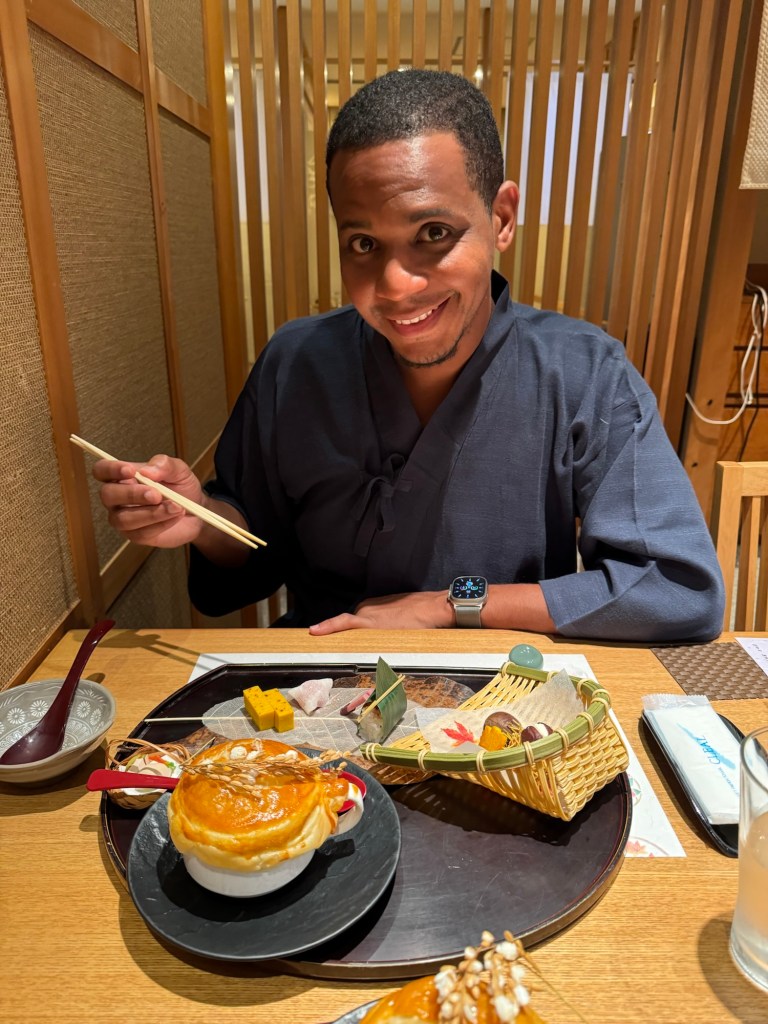Le soir venu, un repas kaiseki, véritable œuvre d’art culinaire, nous attend : présentation soignée, ingrédients locaux et saveurs délicates.