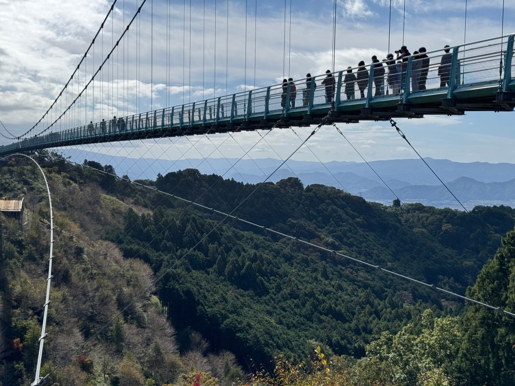 Direction ensuite Mishima, où nous attend le plus long pont suspendu du Japon. Long de près de 400 mètres, le Mishima Skywalk surplombe une vallée spectaculaire, offrant une vue panoramique à couper le souffle sur le mont Fuji.