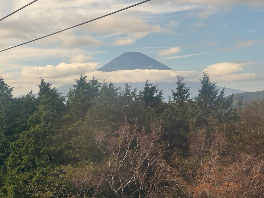 Au fur et à mesure de l’ascension, le panorama s’ouvre sur les vallées verdoyantes, les fumerolles volcaniques et, encore une fois, la silhouette du mont Fuji en toile de fond.