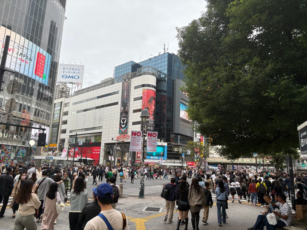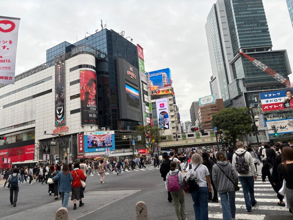 Dès la sortie de la gare, on se retrouve plongé dans le carrefour le plus célèbre du monde. Des centaines de personnes traversent à chaque feu, dans un ballet parfaitement orchestré.