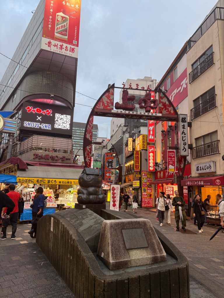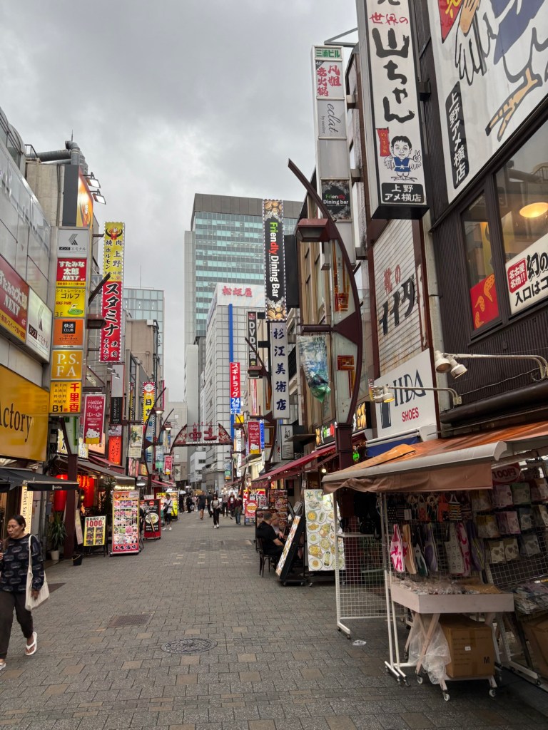 Après la visite d’Asakusa, direction Ueno que nous traversons à pied. Ses rues marchandes offrent une ambiance authentique, entre marchés, petits restaurants et vendeurs à la criée.