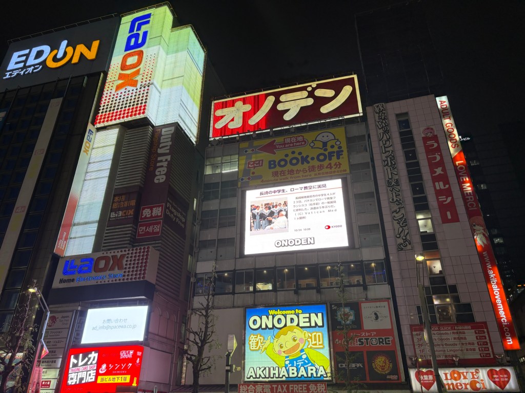 En soirée, Changement radical de décor par la visite d’Akihabara de nuit : ici c’est le paradis des fans de jeux vidéo, d’électronique et de culture manga.
