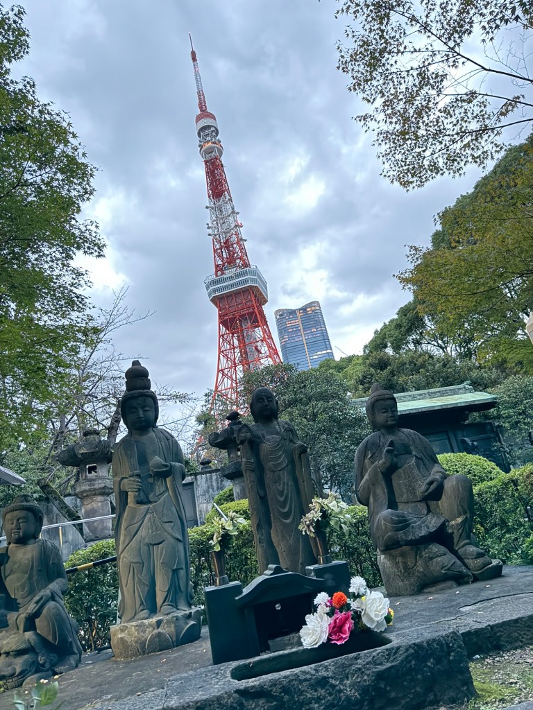 C’est aussi l’un des meilleurs points de vue sur la Tour de Tokyo, cette tour rouge inspirée de la Tour Eiffel mais plus élancée.