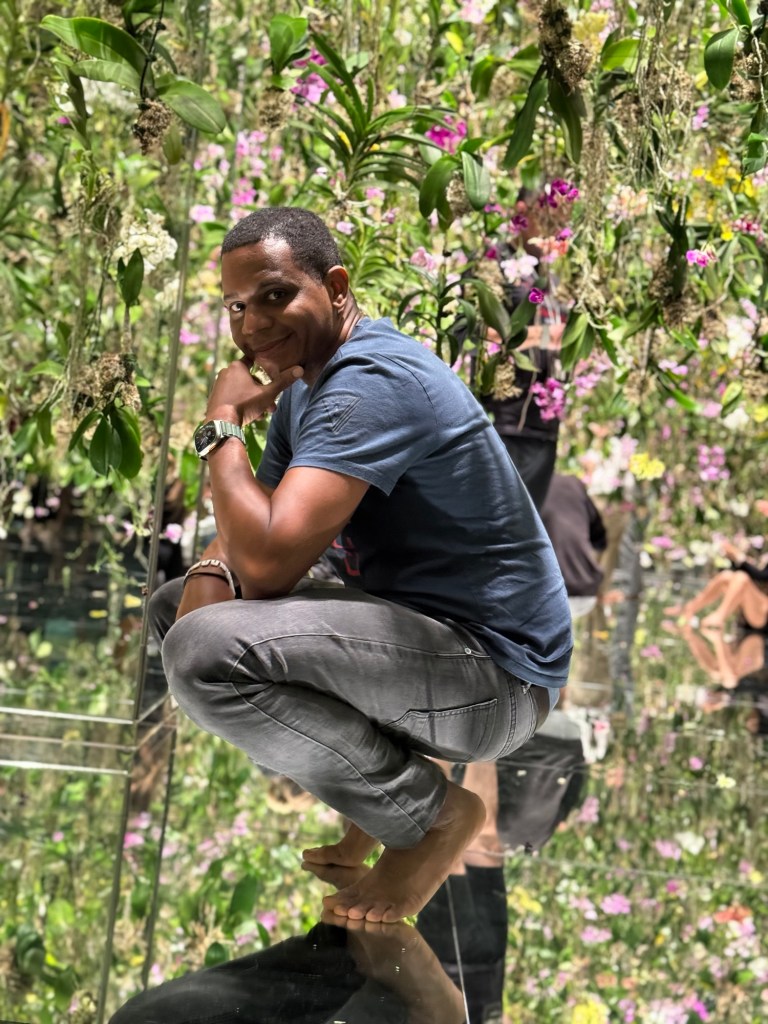 Ici, on marche pieds nus dans l’eau, on se perd dans des salles de miroirs, on flotte parmi des fleurs numériques et des jeux de lumière en perpétuel mouvement.