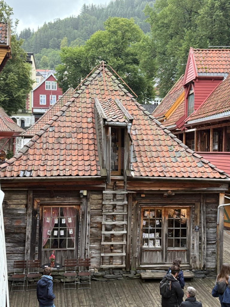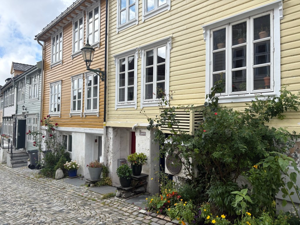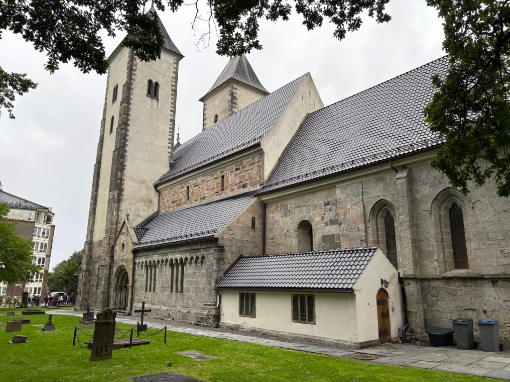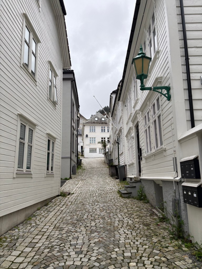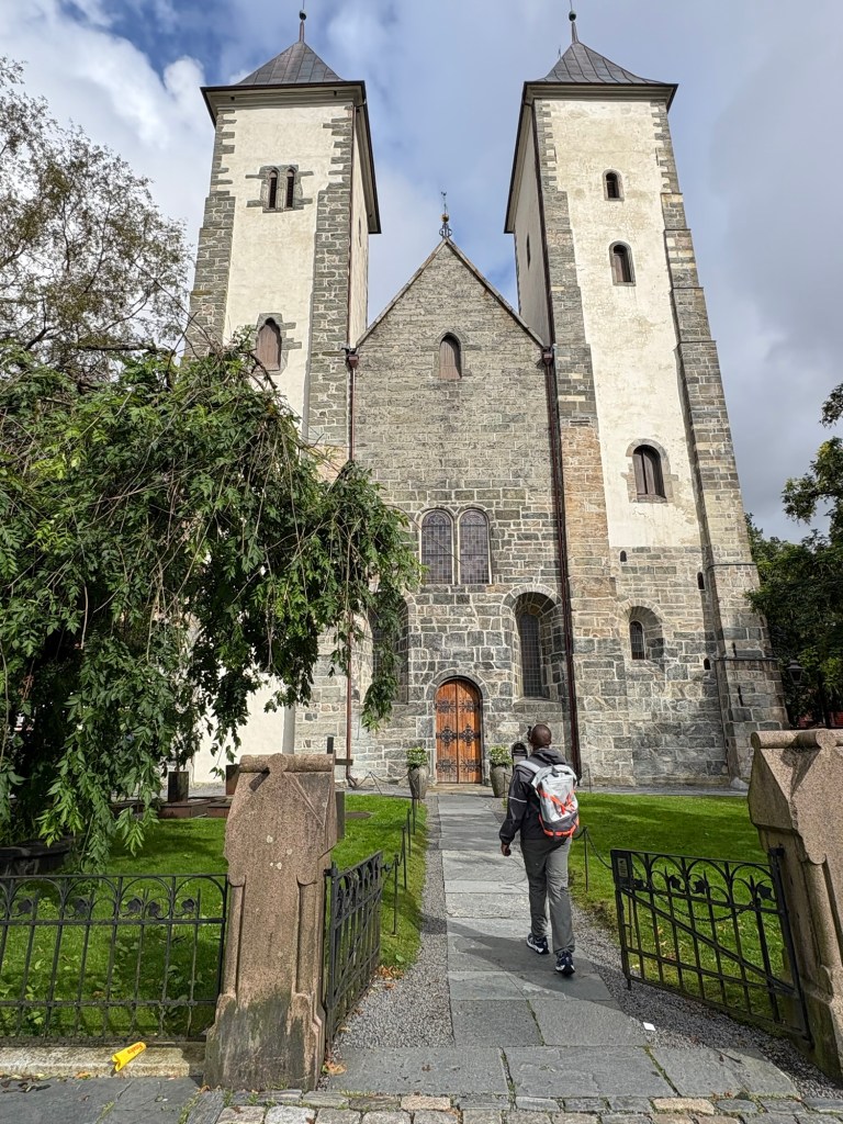 Alors que la pluie persistait depuis notre arrivée, le soleil décide enfin de pointer le bout de son nez. Direction le centre-ville pour une balade à pied, à travers les ruelles charmantes de Bergen. Sur notre route : la Mariakirken, magnifique église en pierre datant du XIIe siècle.