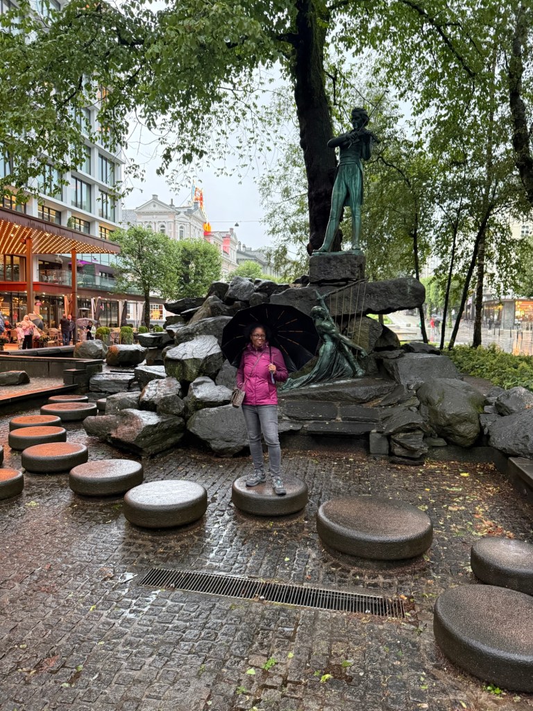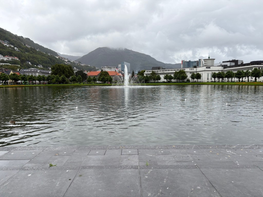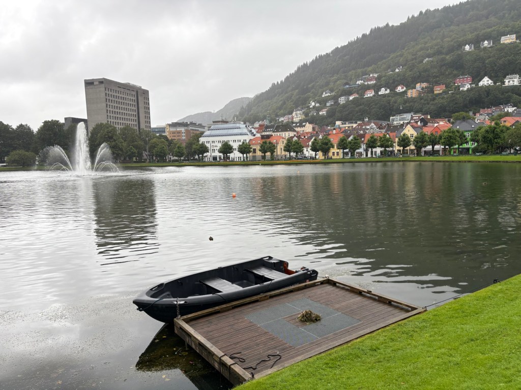 Enfin, nous terminons la journée au bord du lac Lille Lungegårdsvannet, entouré de musées, et oui… toujours sous la pluie.